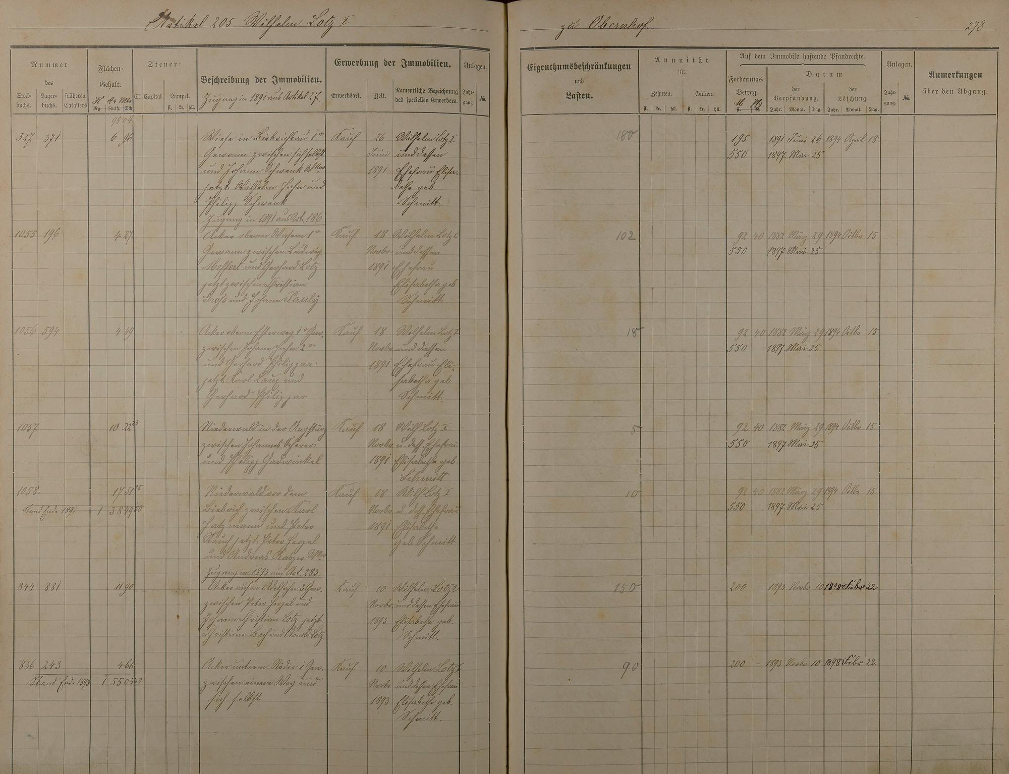 Stockbuch Artikel 74 - 223 - Besitzer P - Z aus Obernhof und Orte A -außerhalb