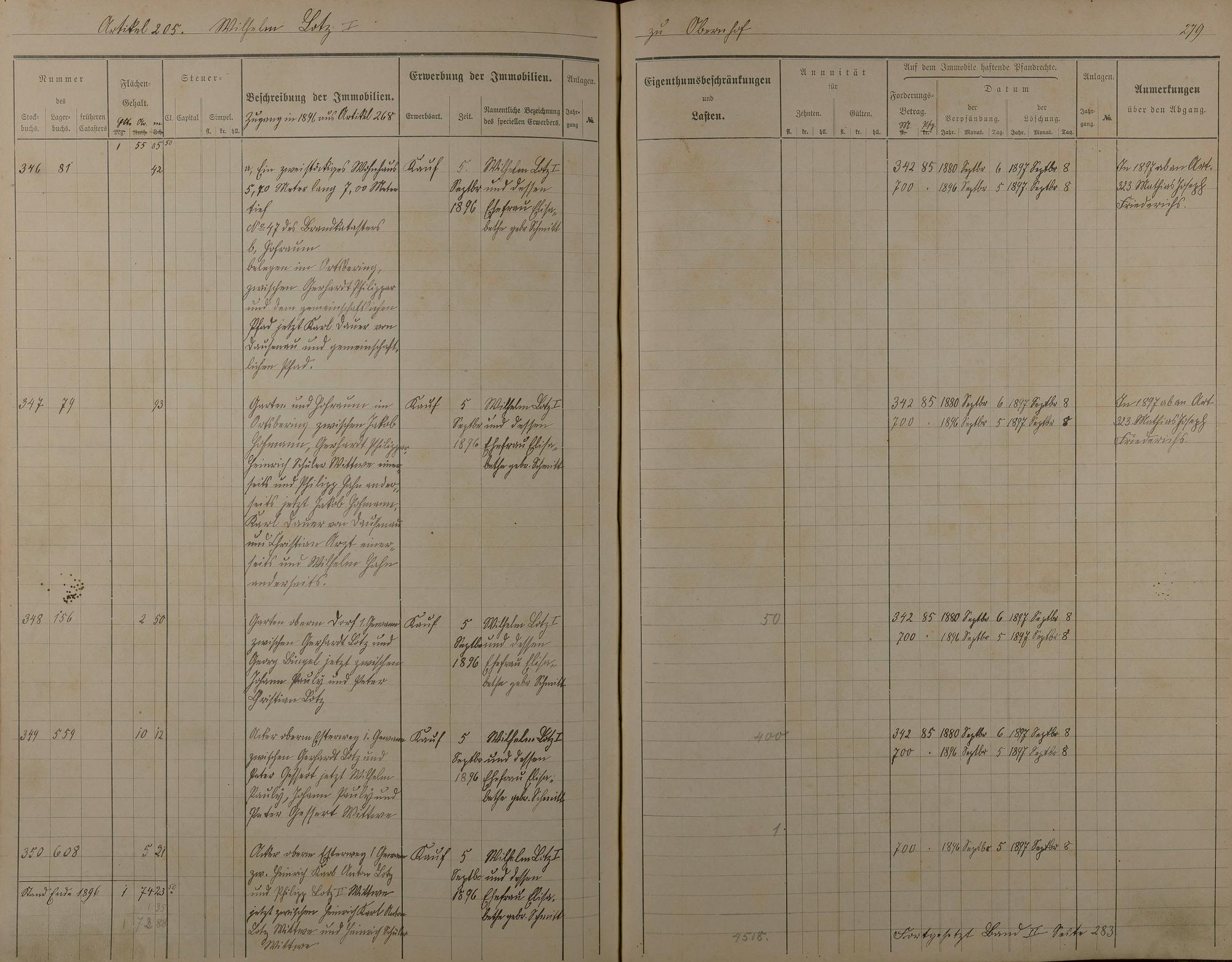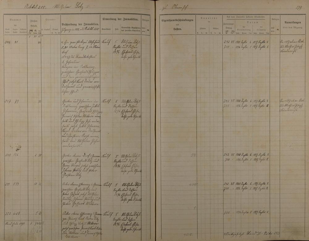 Stockbuch Artikel 74 - 223 - Besitzer P - Z aus Obernhof und Orte A -außerhalb