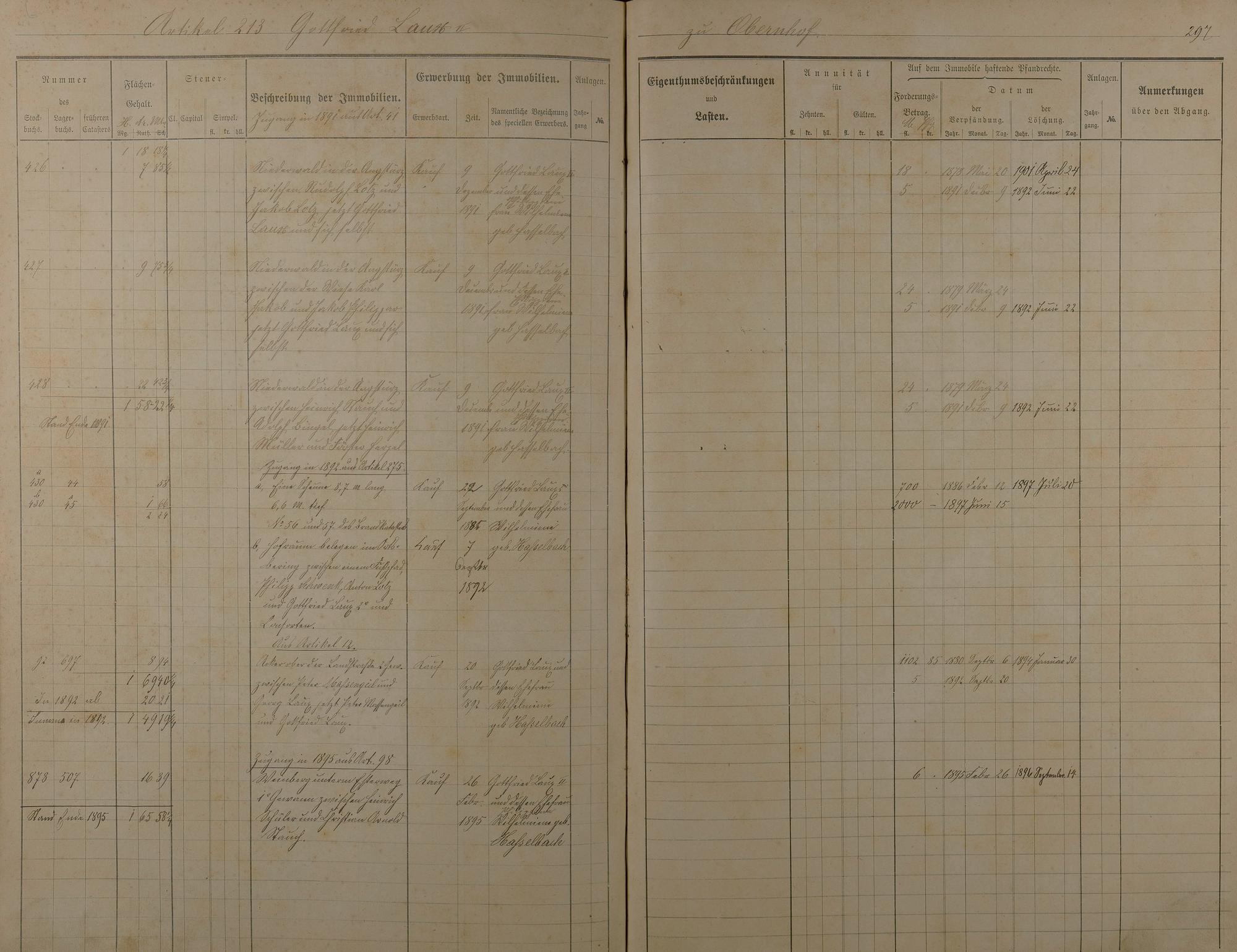 Stockbuch Artikel 74 - 223 - Besitzer P - Z aus Obernhof und Orte A -außerhalb
