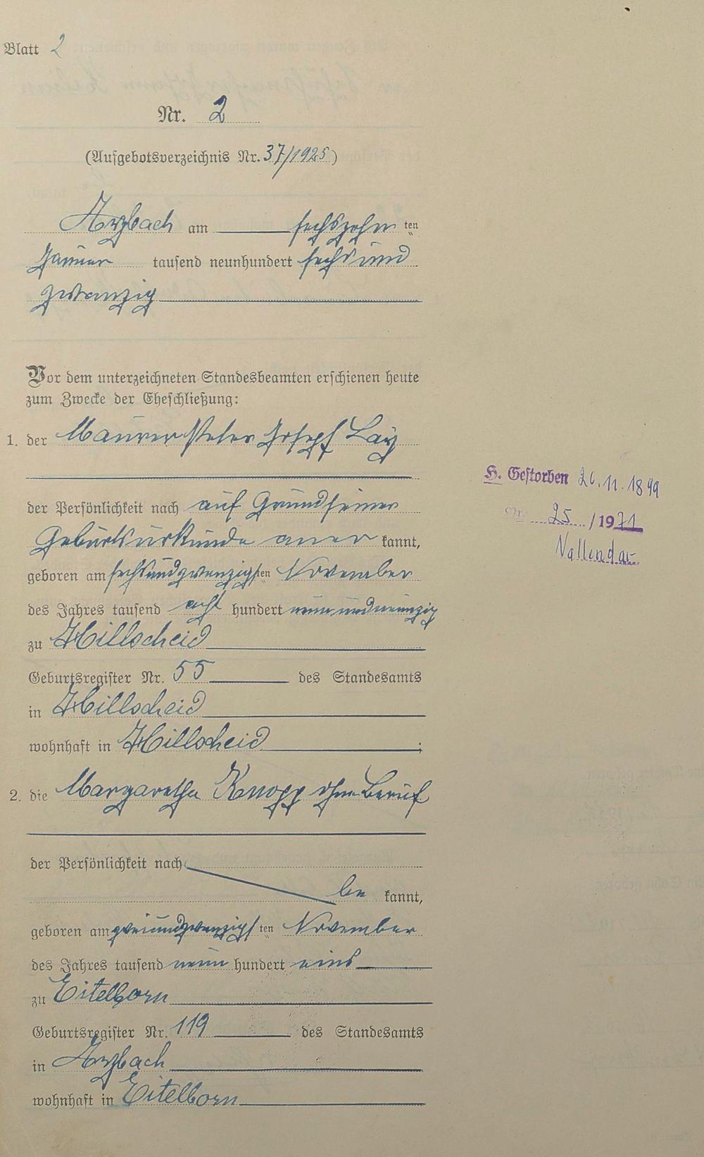 Heiratsregister 1926