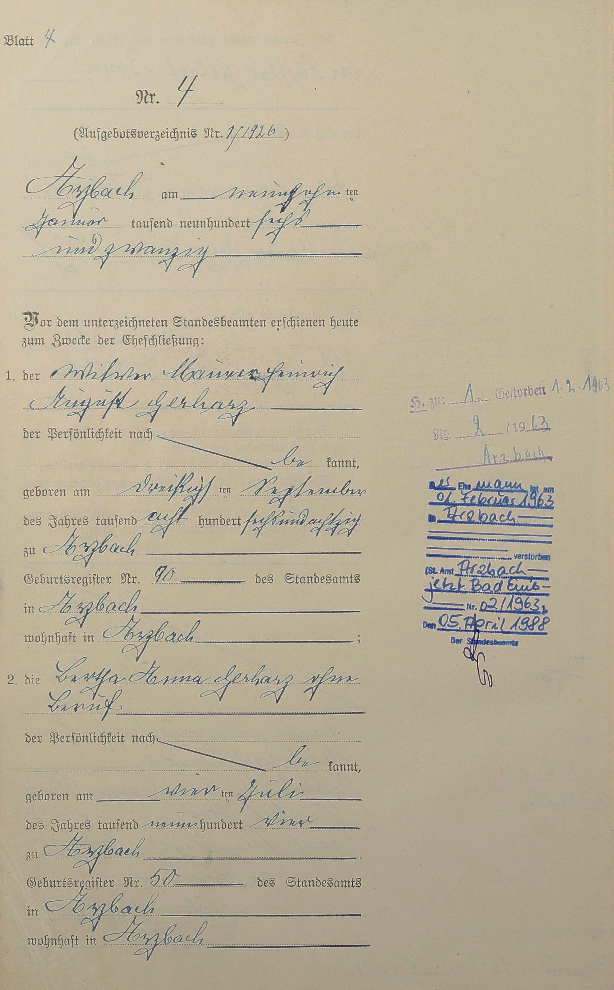 Heiratsregister 1926