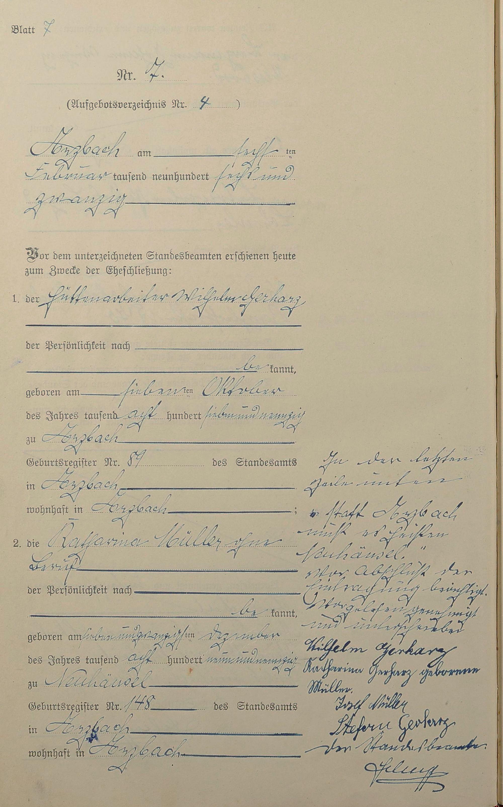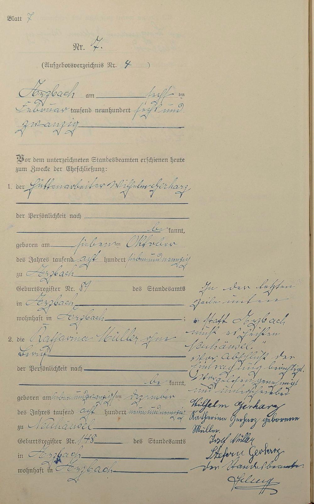 Heiratsregister 1926