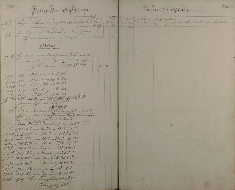 Lagerbuch aller Äcker, Wiesen, Gärten, Baumstücke und Weinberge nach Besitzern aufgenommen vom Oranien-Nassauischen Kantor D. Feller