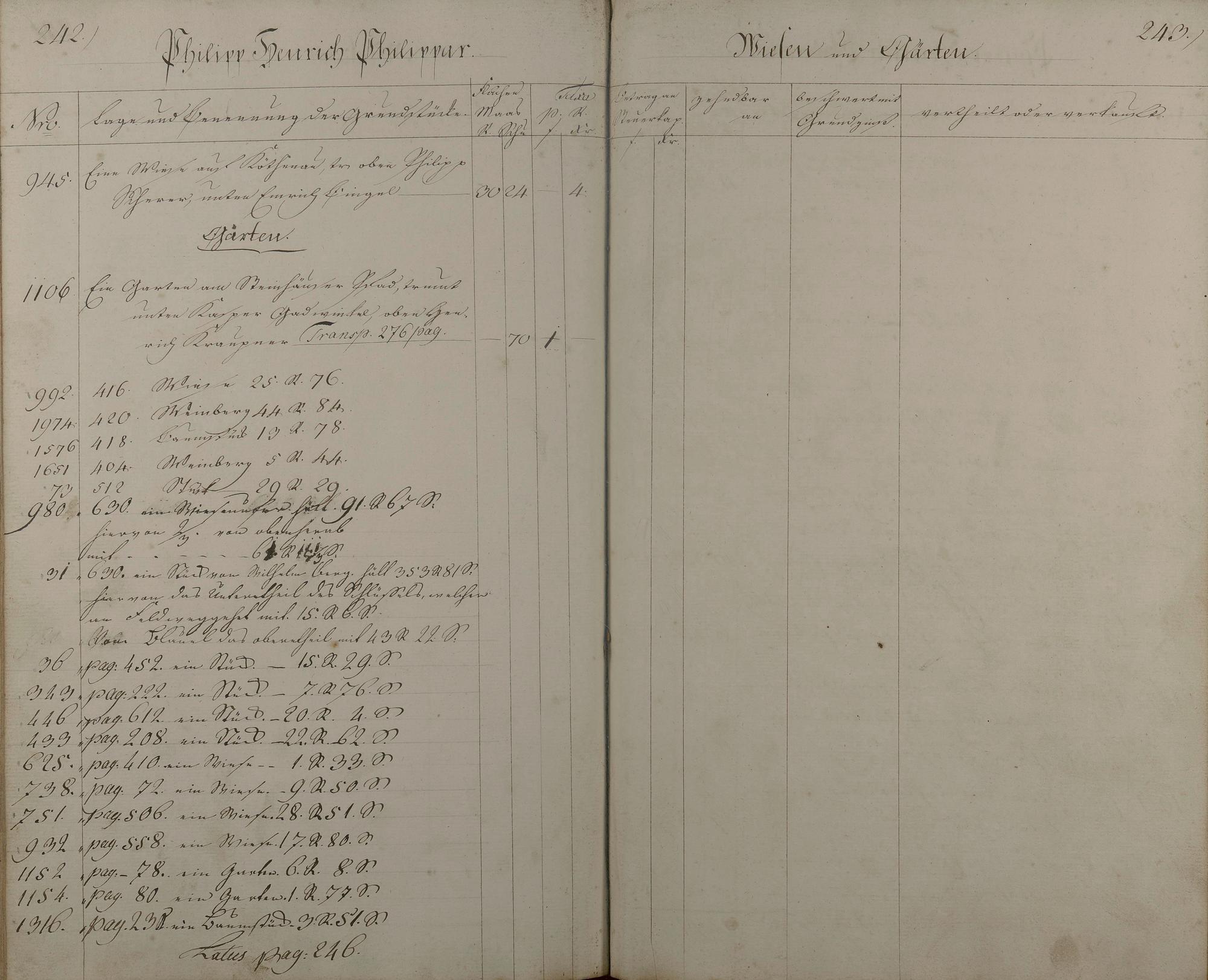 3: Lagerbuch aller Äcker, Wiesen, Gärten, Baumstücke und Weinberge nach Besitzern...