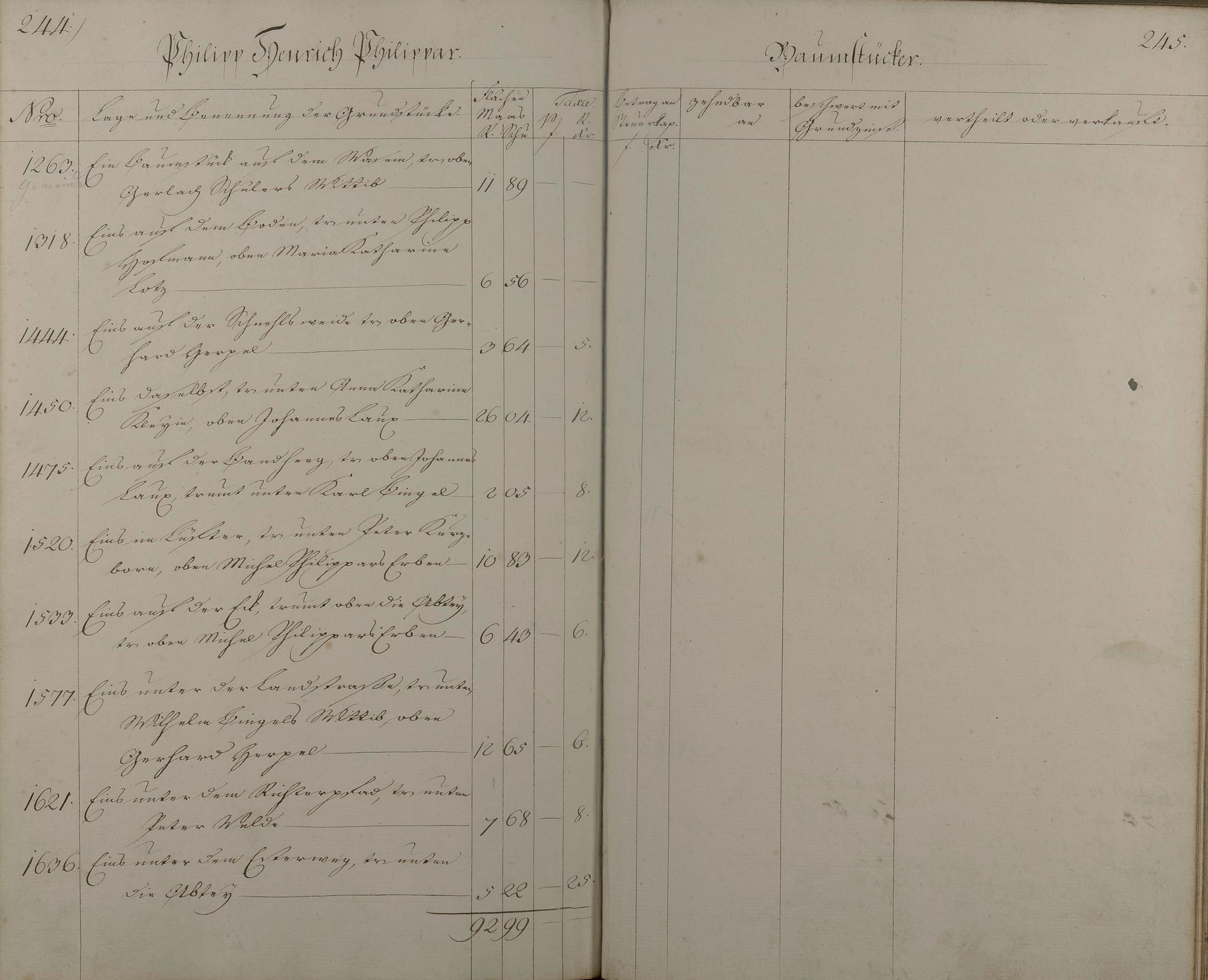 Lagerbuch aller Äcker, Wiesen, Gärten, Baumstücke und Weinberge nach Besitzern aufgenommen vom Oranien-Nassauischen Kantor D. Feller