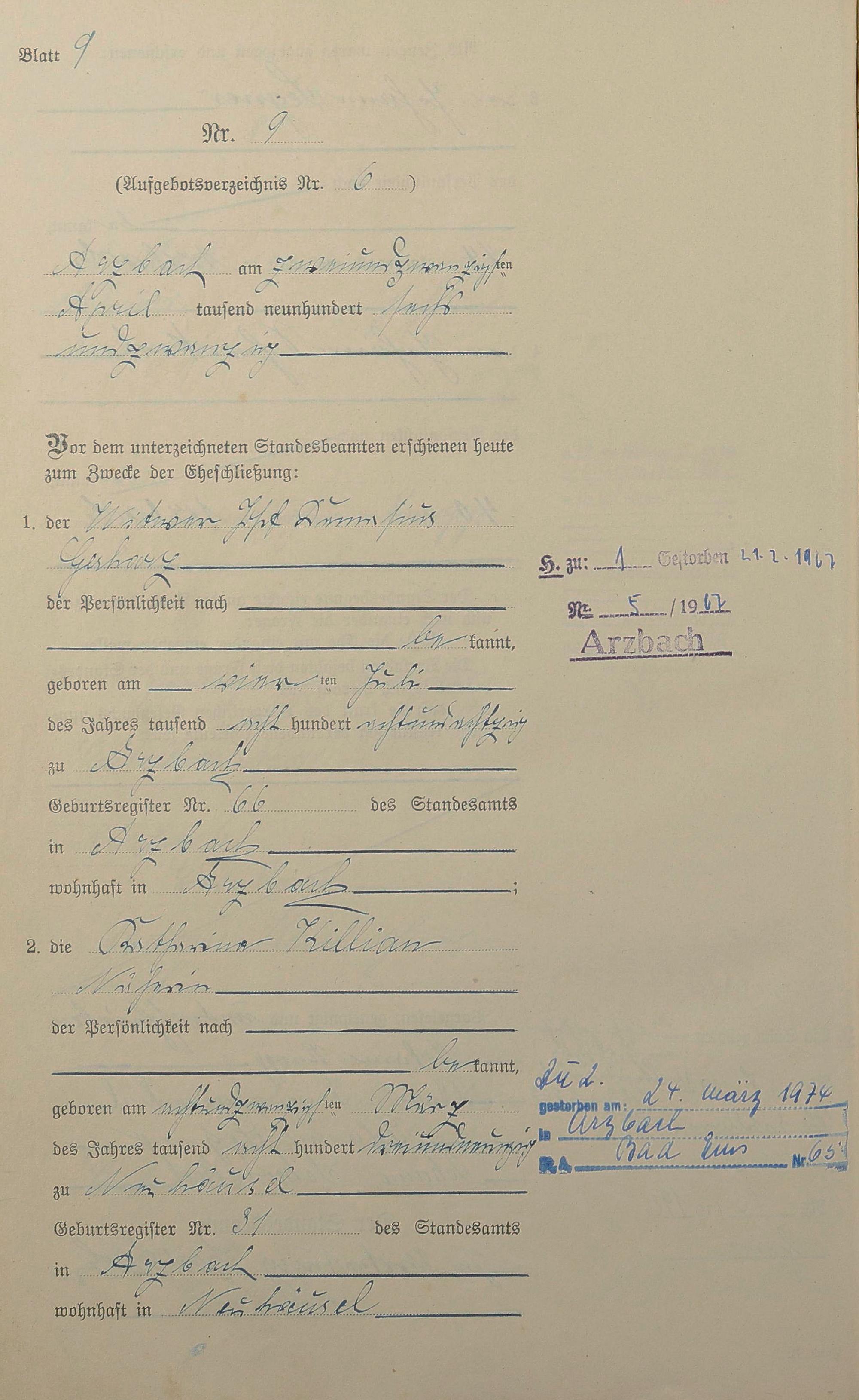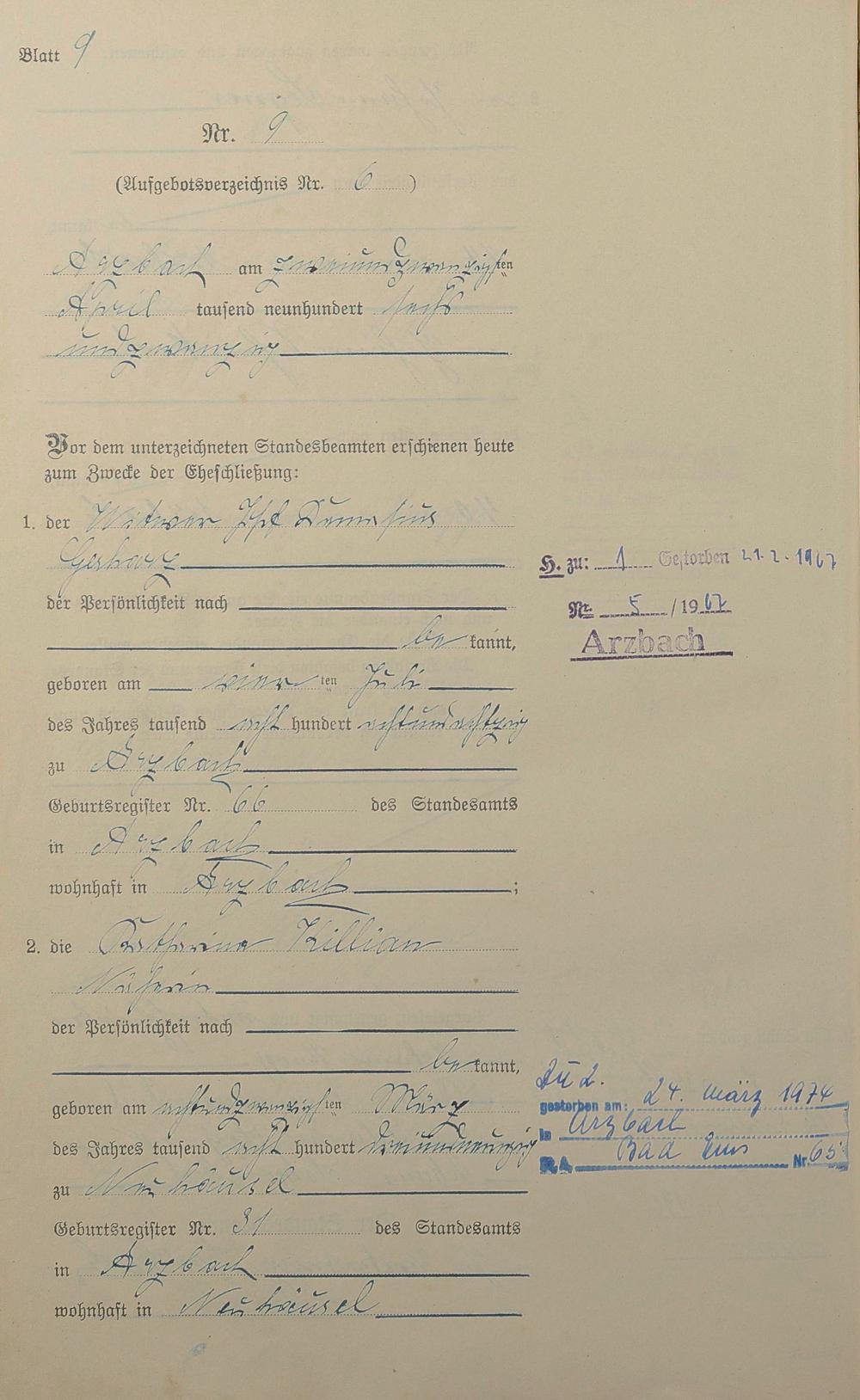 Heiratsregister 1926