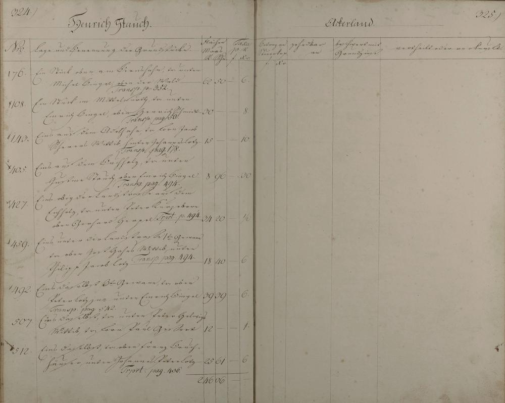 Lagerbuch aller Äcker, Wiesen, Gärten, Baumstücke und Weinberge nach Besitzern aufgenommen vom Oranien-Nassauischen Kantor D. Feller
