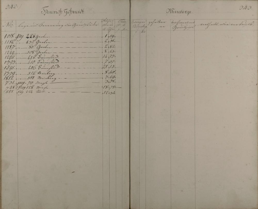 Lagerbuch aller Äcker, Wiesen, Gärten, Baumstücke und Weinberge nach Besitzern aufgenommen vom Oranien-Nassauischen Kantor D. Feller