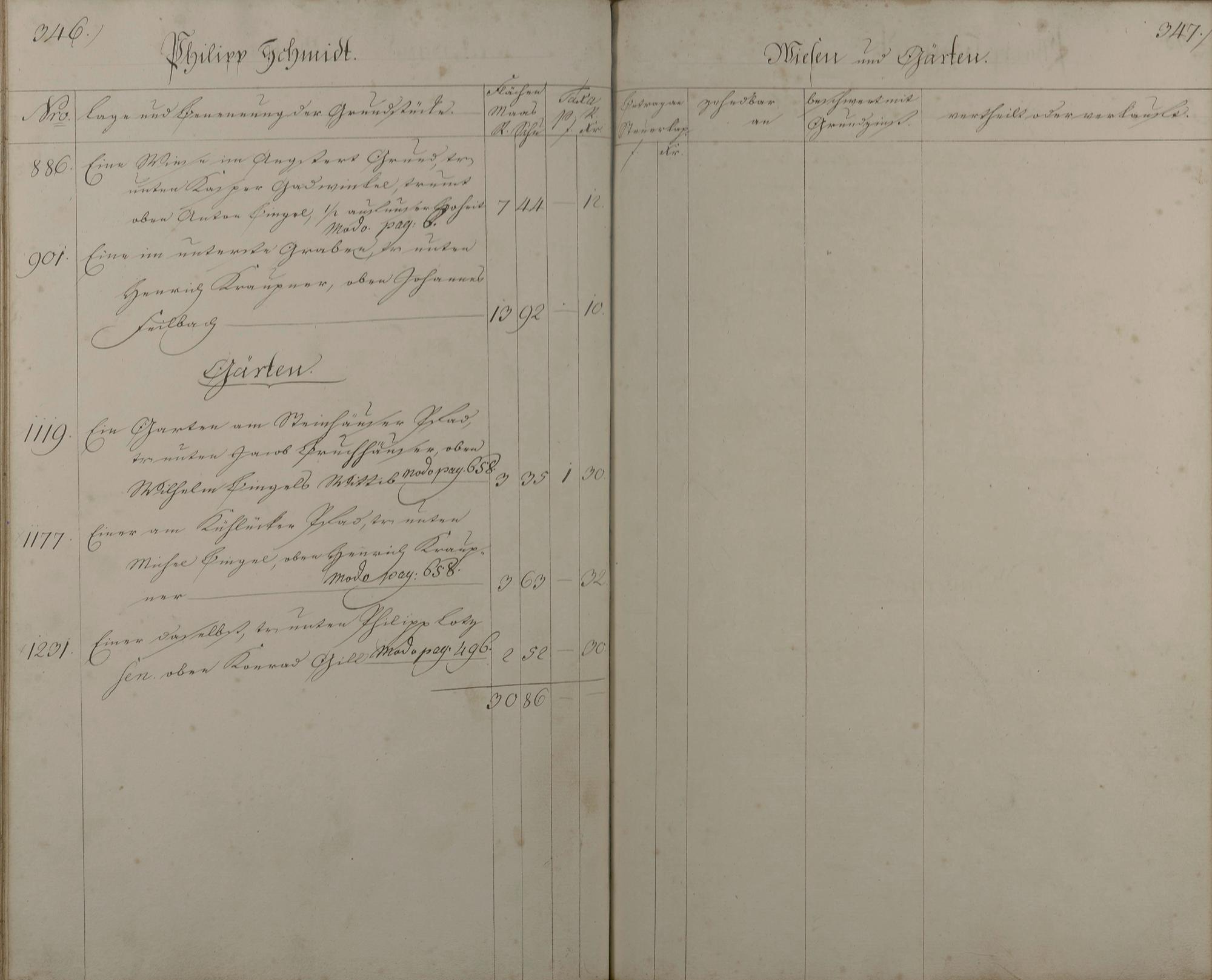 3: Lagerbuch aller Äcker, Wiesen, Gärten, Baumstücke und Weinberge nach Besitzern...