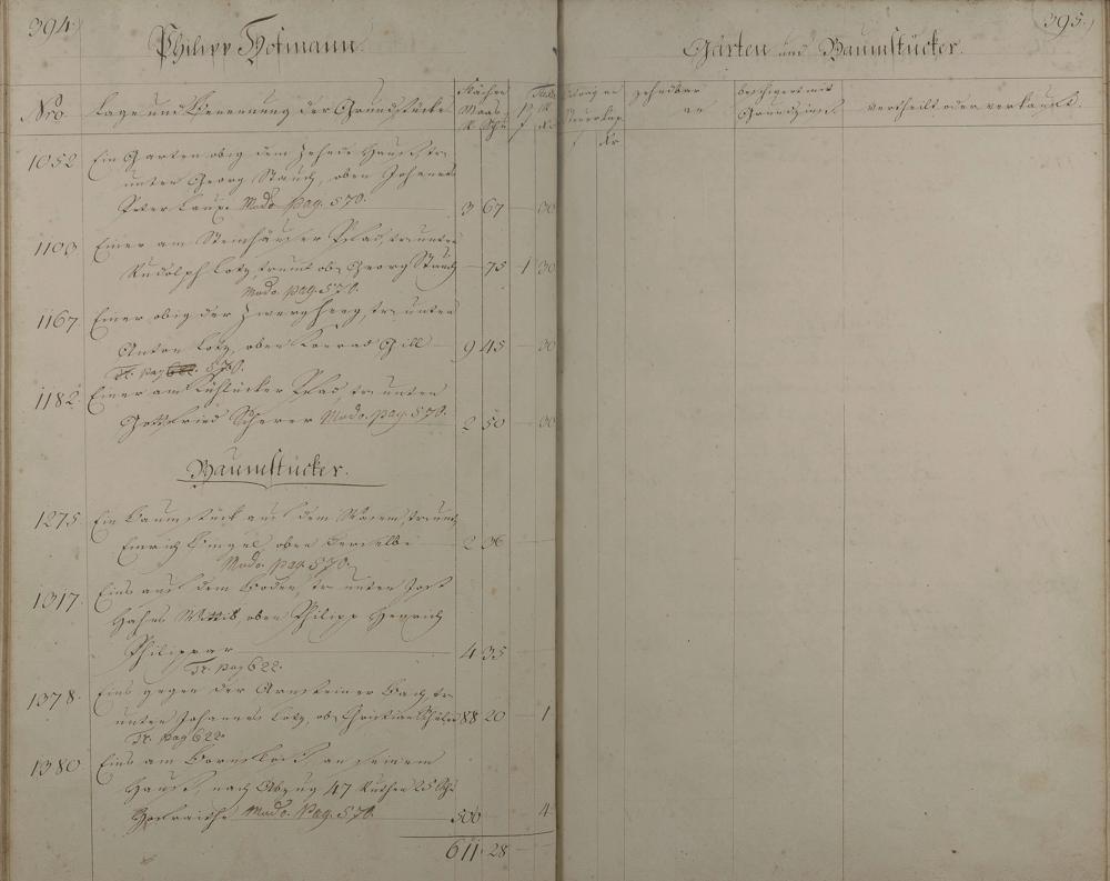 Lagerbuch aller Äcker, Wiesen, Gärten, Baumstücke und Weinberge nach Besitzern aufgenommen vom Oranien-Nassauischen Kantor D. Feller