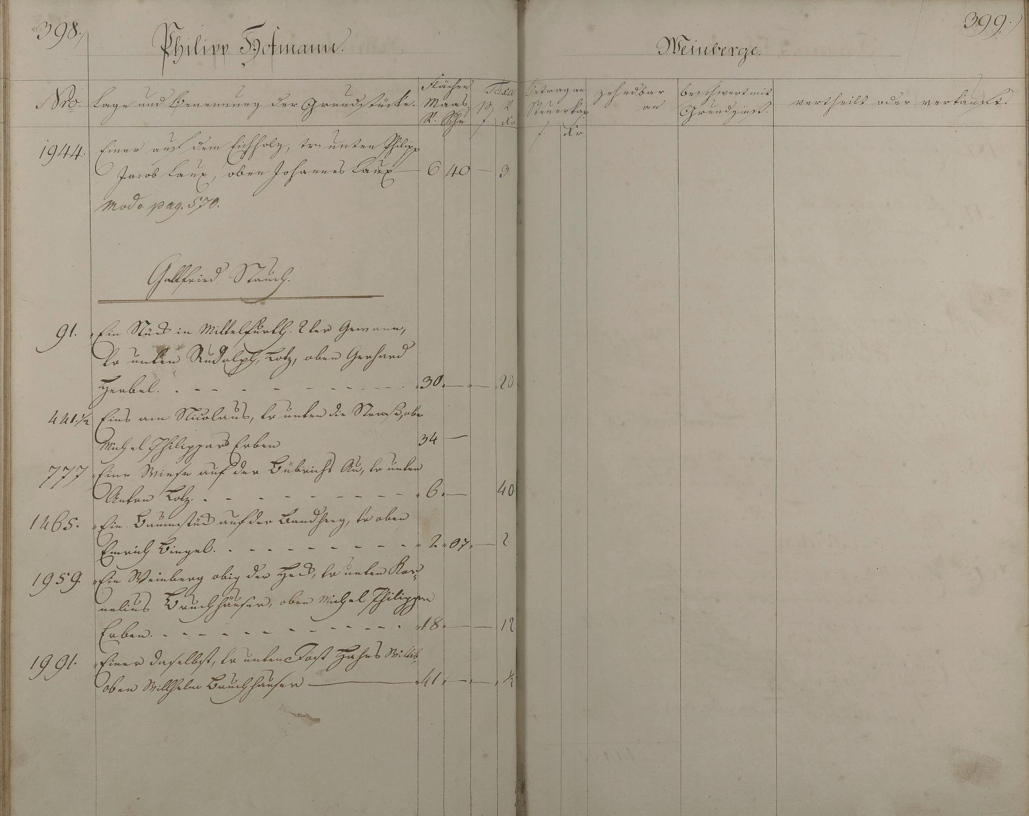 3: Lagerbuch aller Äcker, Wiesen, Gärten, Baumstücke und Weinberge nach Besitzern...