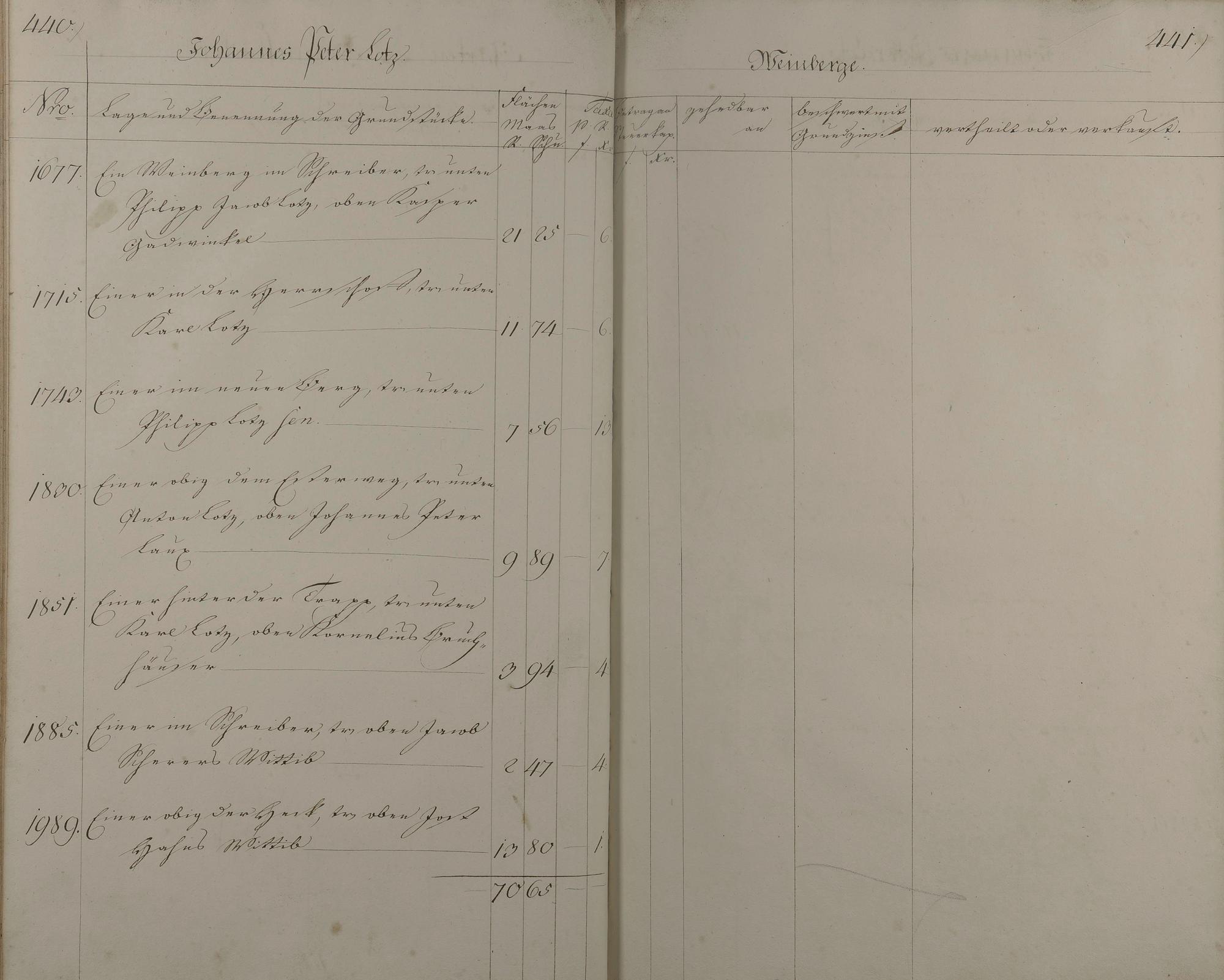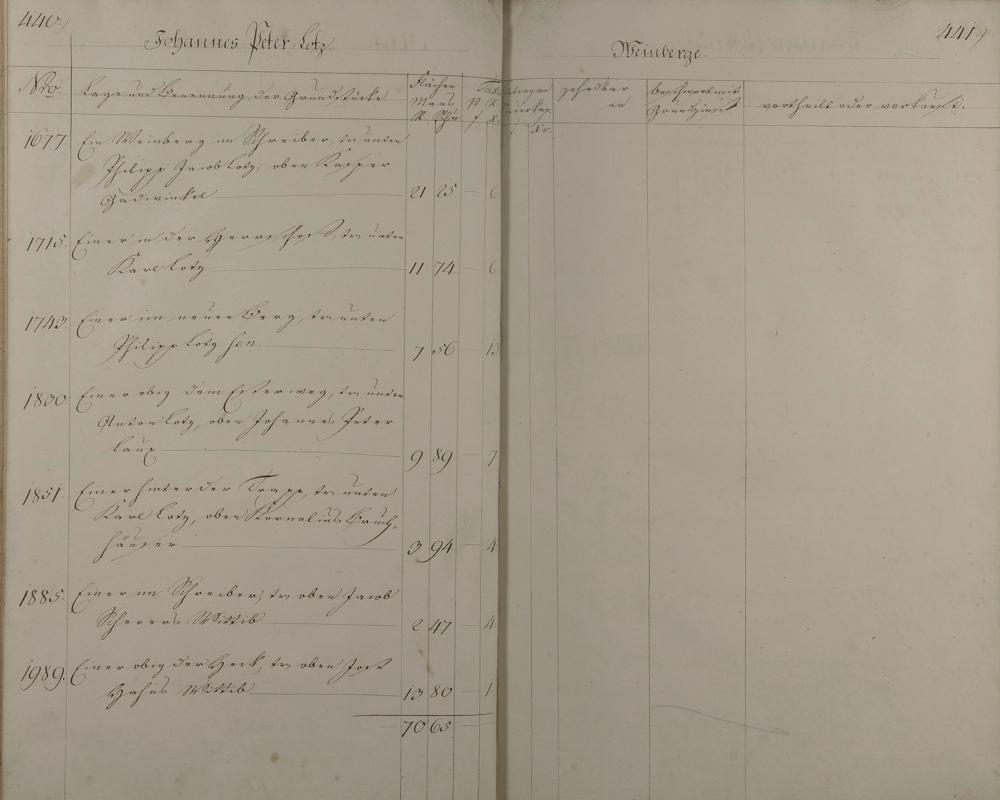 Lagerbuch aller Äcker, Wiesen, Gärten, Baumstücke und Weinberge nach Besitzern aufgenommen vom Oranien-Nassauischen Kantor D. Feller
