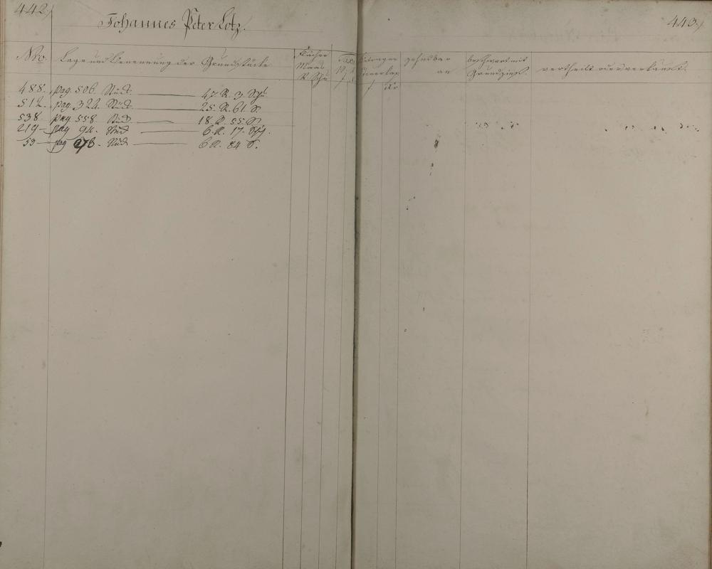 Lagerbuch aller Äcker, Wiesen, Gärten, Baumstücke und Weinberge nach Besitzern aufgenommen vom Oranien-Nassauischen Kantor D. Feller