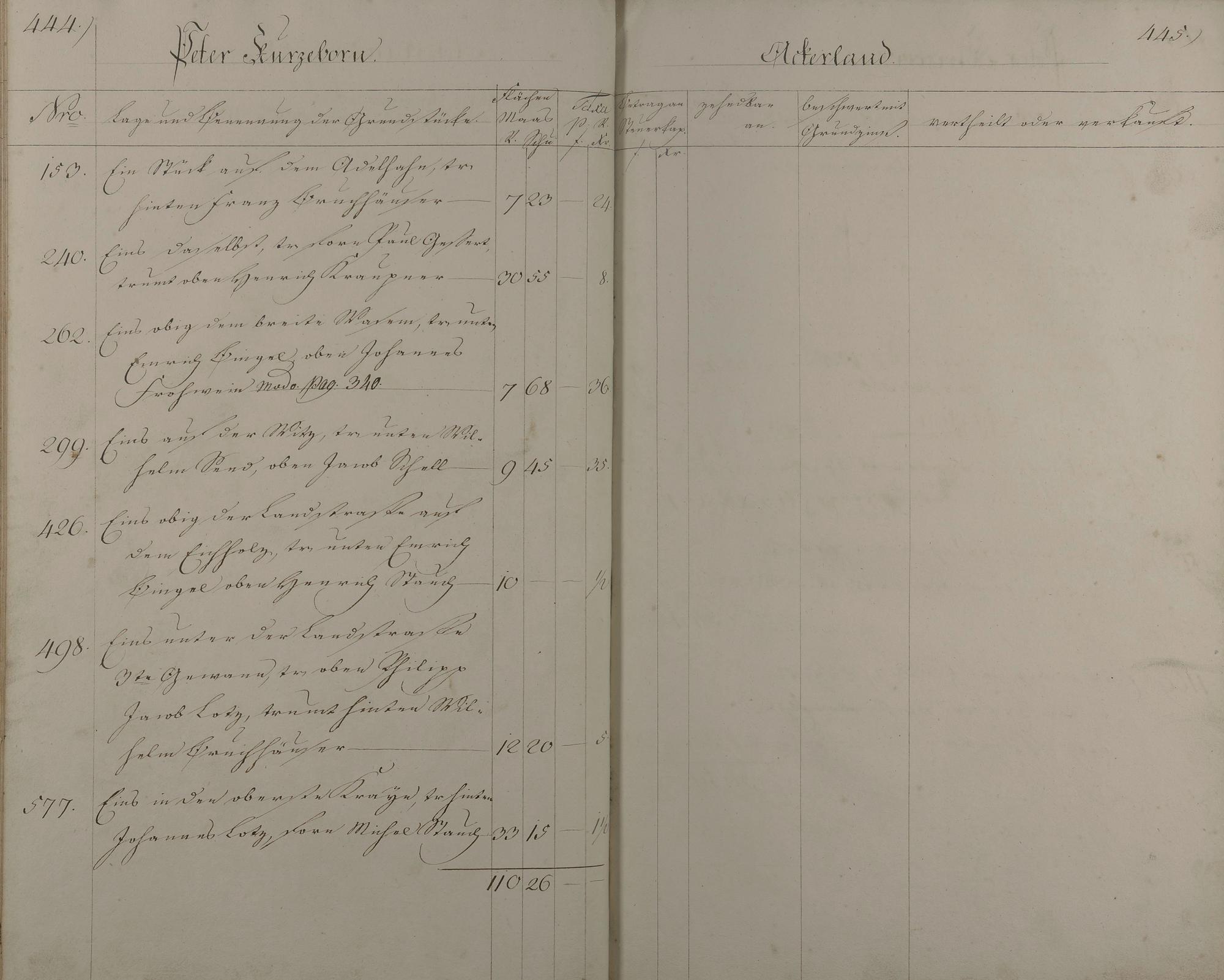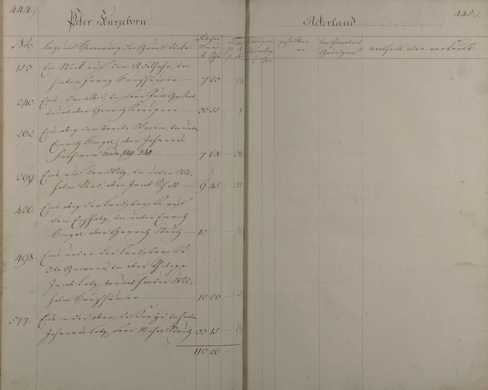 Lagerbuch aller Äcker, Wiesen, Gärten, Baumstücke und Weinberge nach Besitzern aufgenommen vom Oranien-Nassauischen Kantor D. Feller