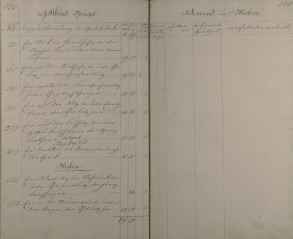 3: Lagerbuch aller Äcker, Wiesen, Gärten, Baumstücke und Weinberge nach Besitzern...
