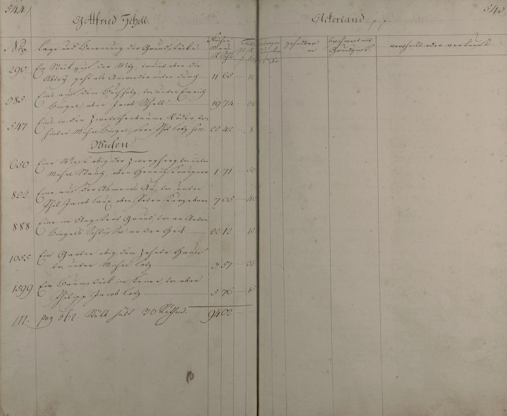 Lagerbuch aller Äcker, Wiesen, Gärten, Baumstücke und Weinberge nach Besitzern aufgenommen vom Oranien-Nassauischen Kantor D. Feller