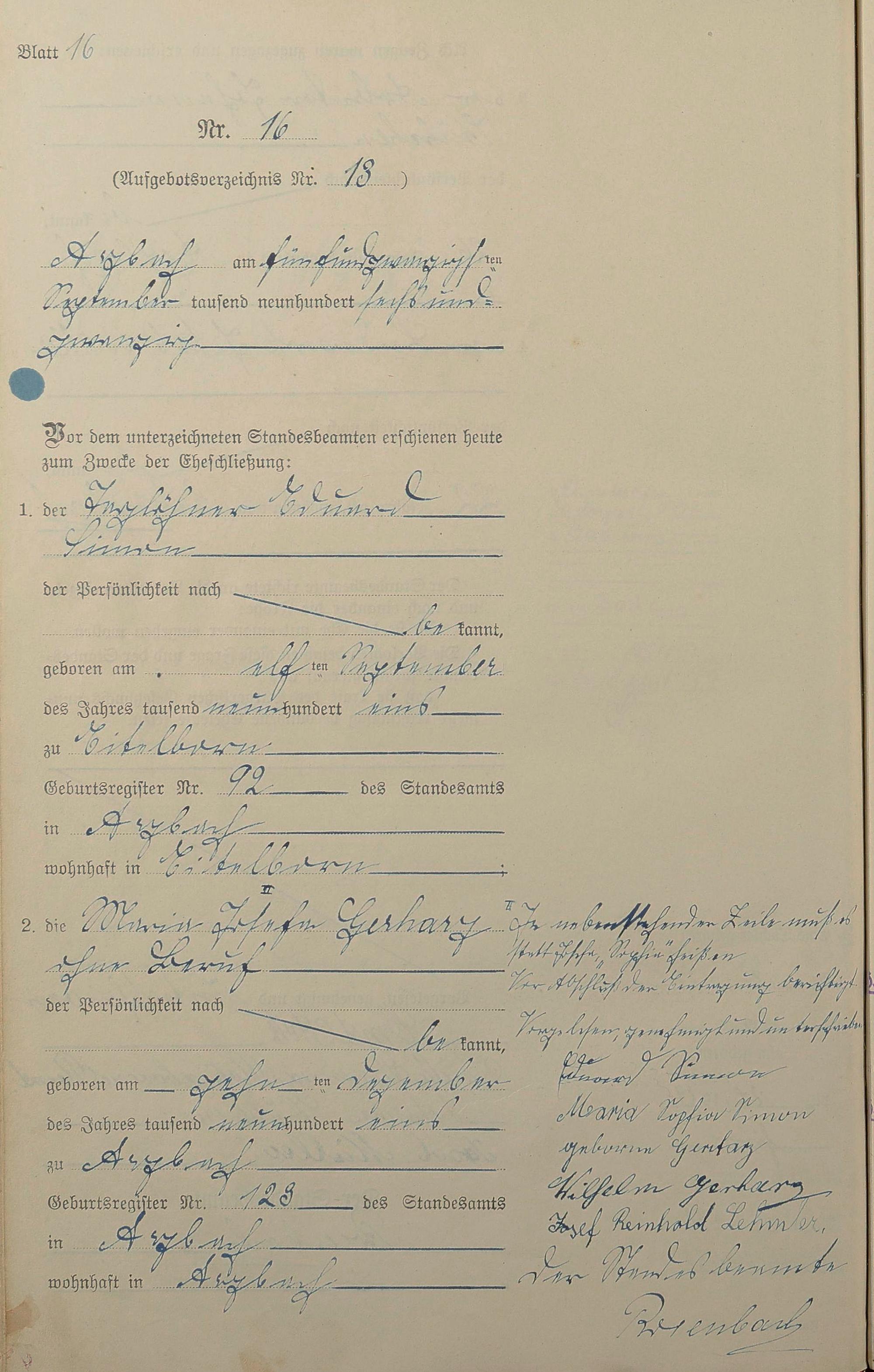 Heiratsregister 1926
