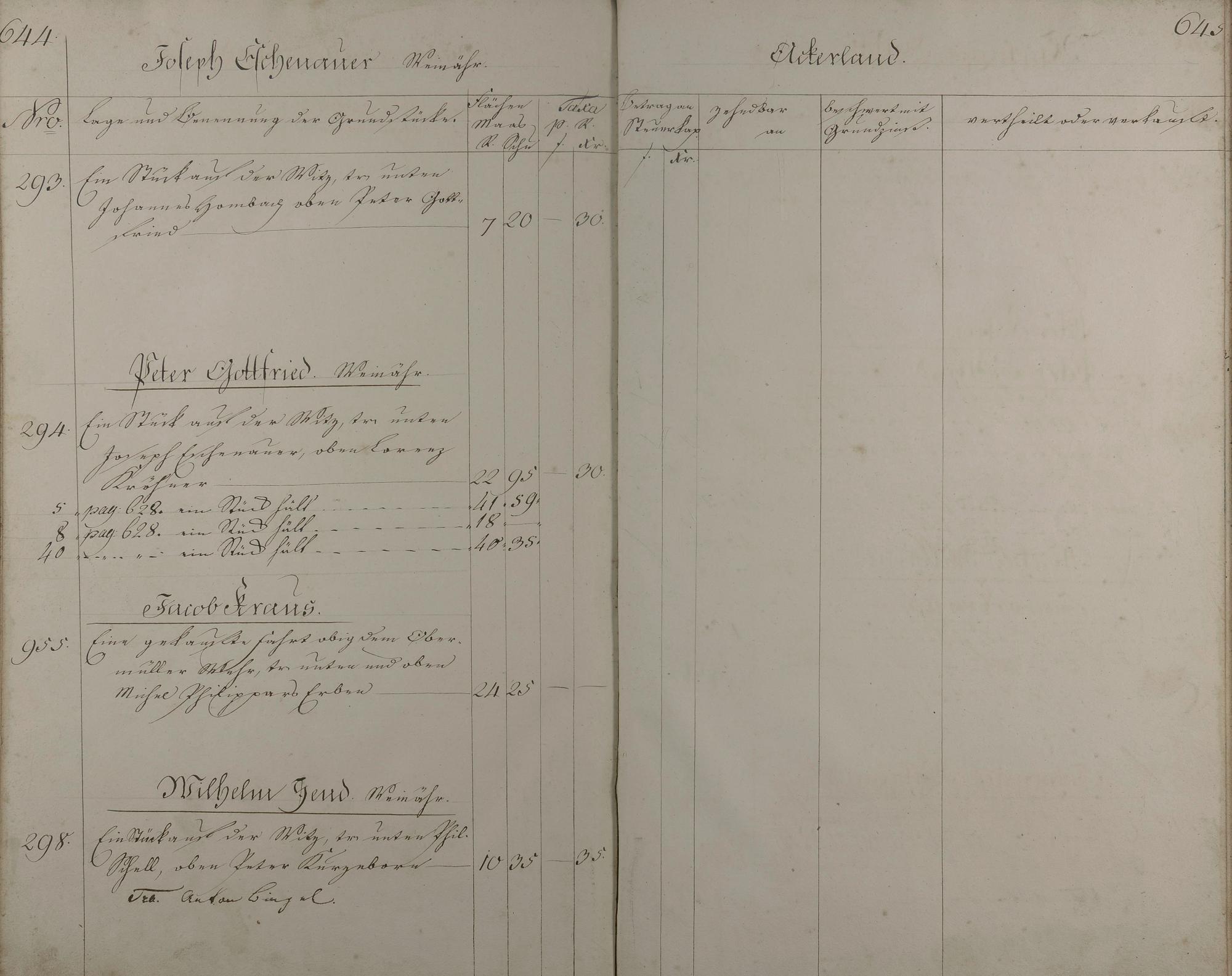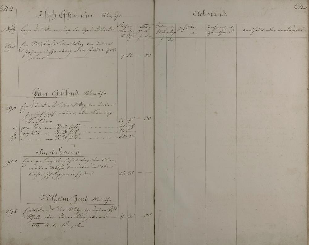 Lagerbuch aller Äcker, Wiesen, Gärten, Baumstücke und Weinberge nach Besitzern aufgenommen vom Oranien-Nassauischen Kantor D. Feller