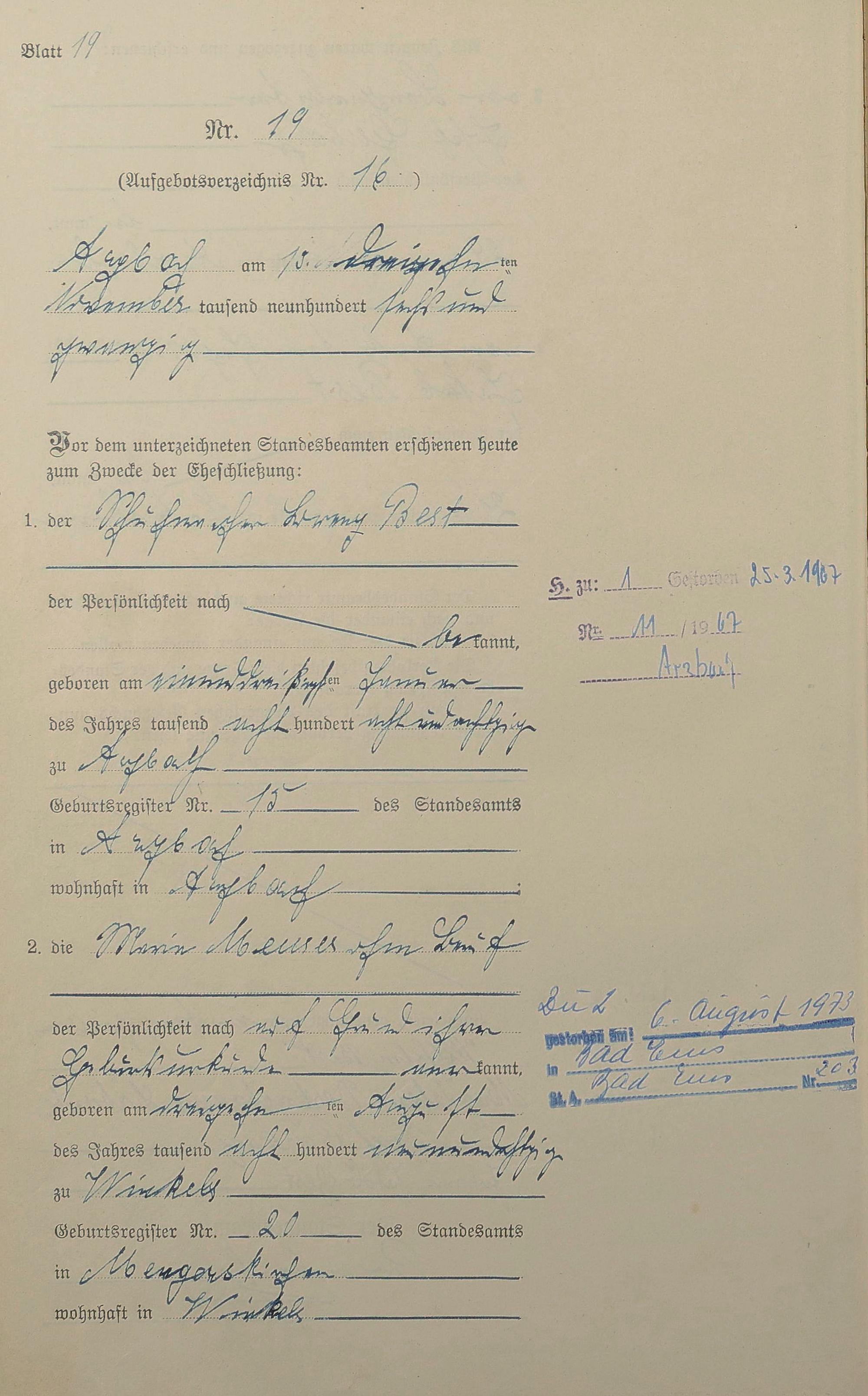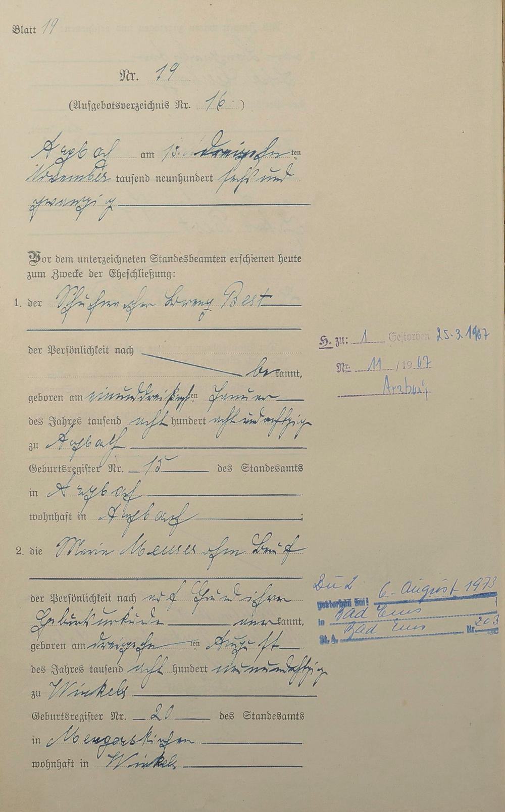 Heiratsregister 1926