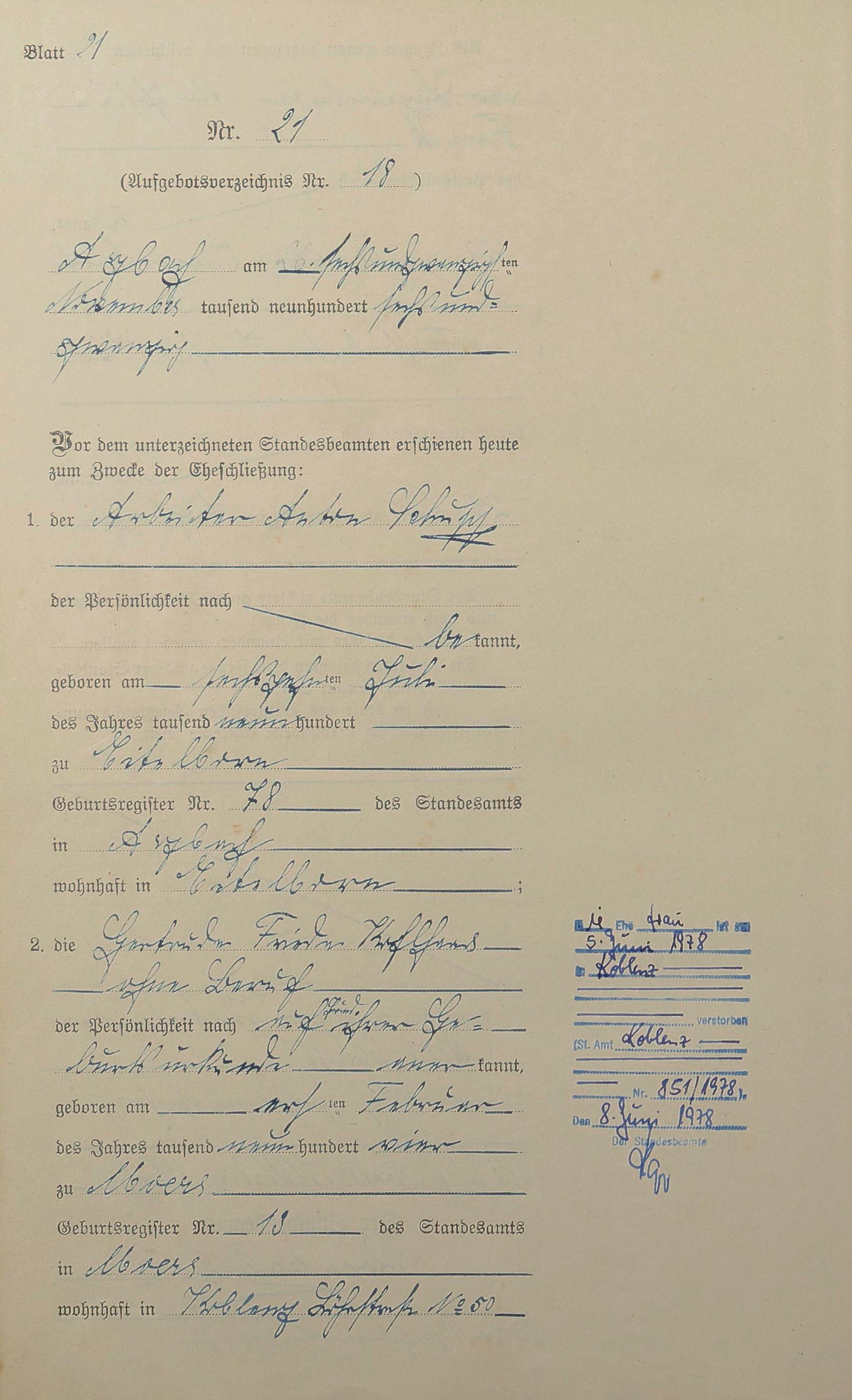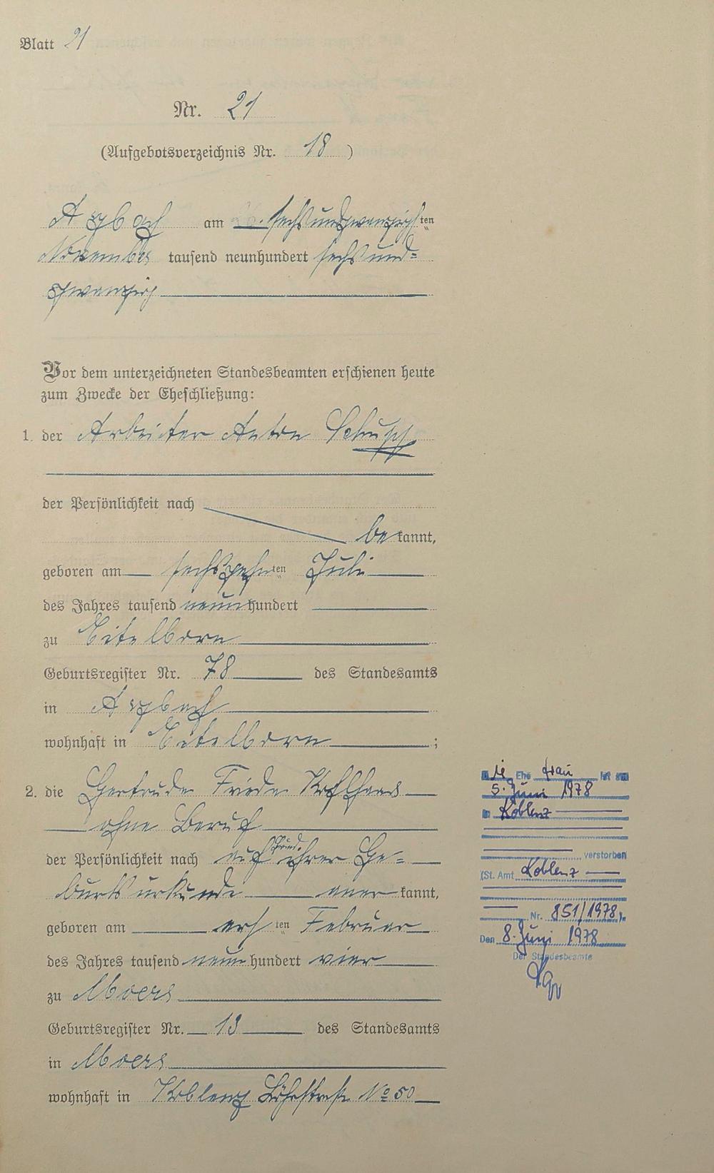 Heiratsregister 1926
