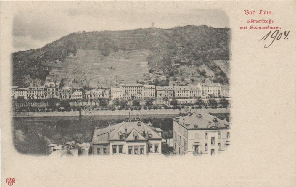 Total von Süden mit Römerstraße, Wilhelms-Inhalatorium, und Bismarckturm.