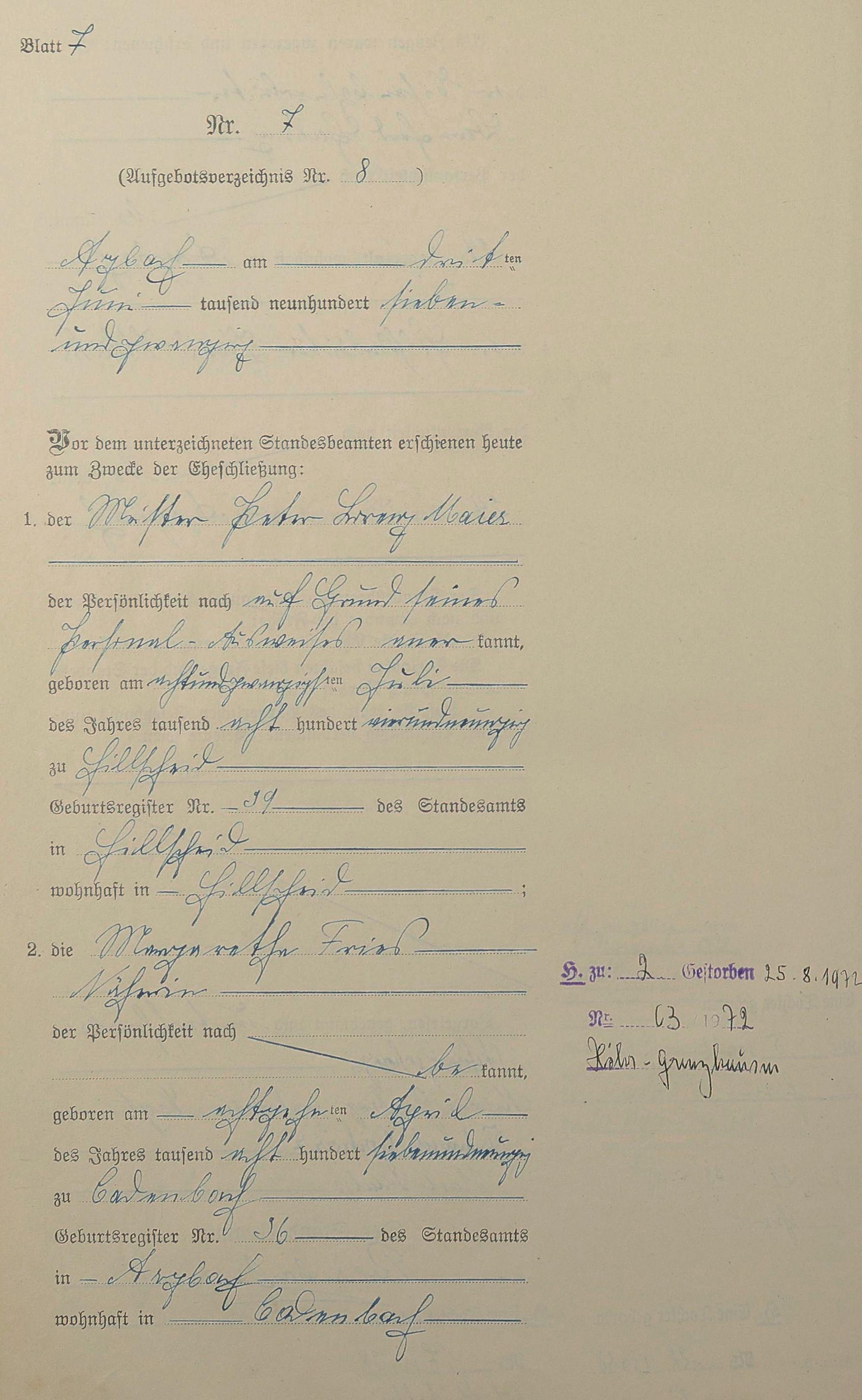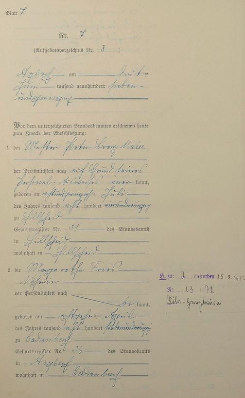 Heiratsregister 1927