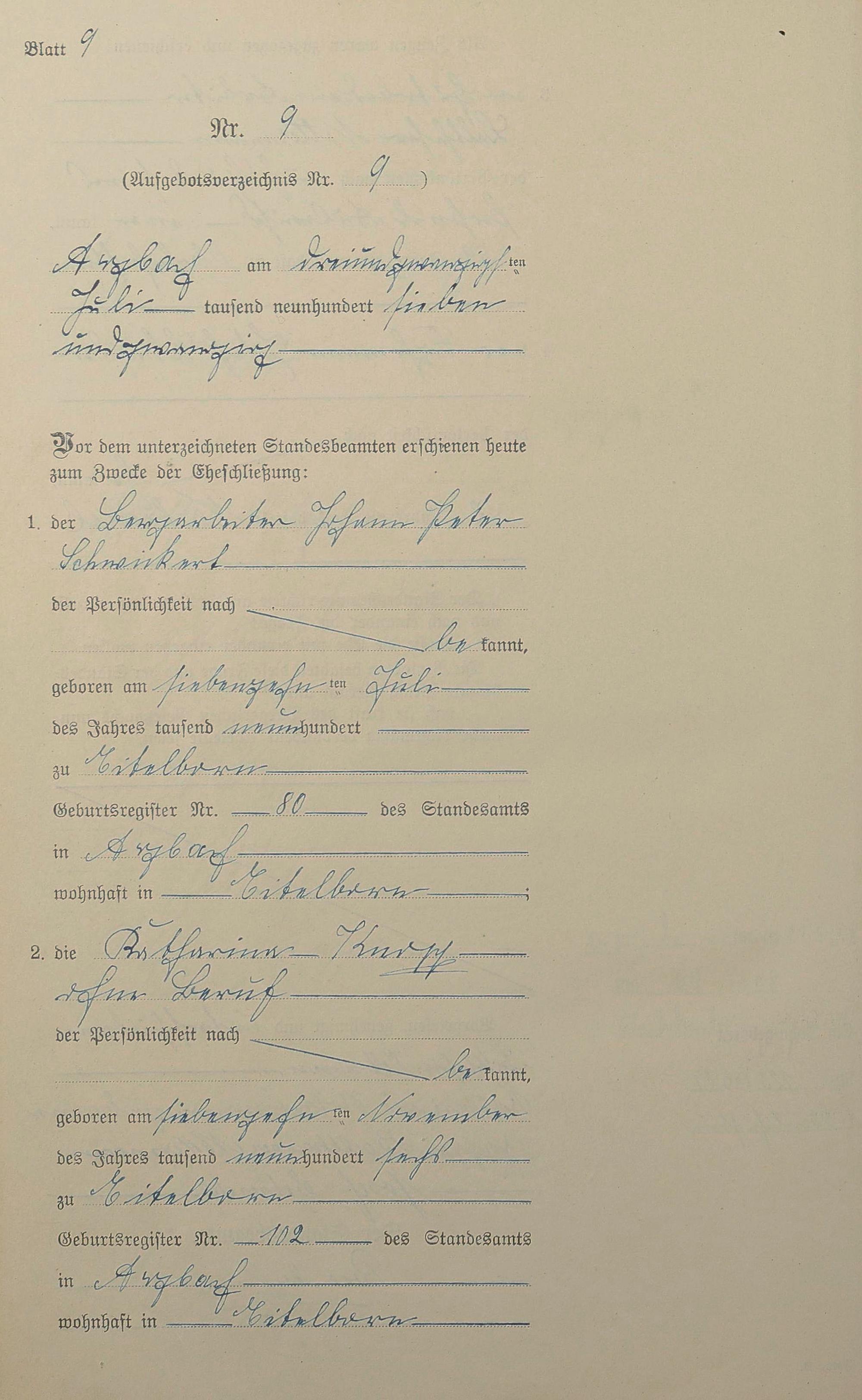 Heiratsregister 1927