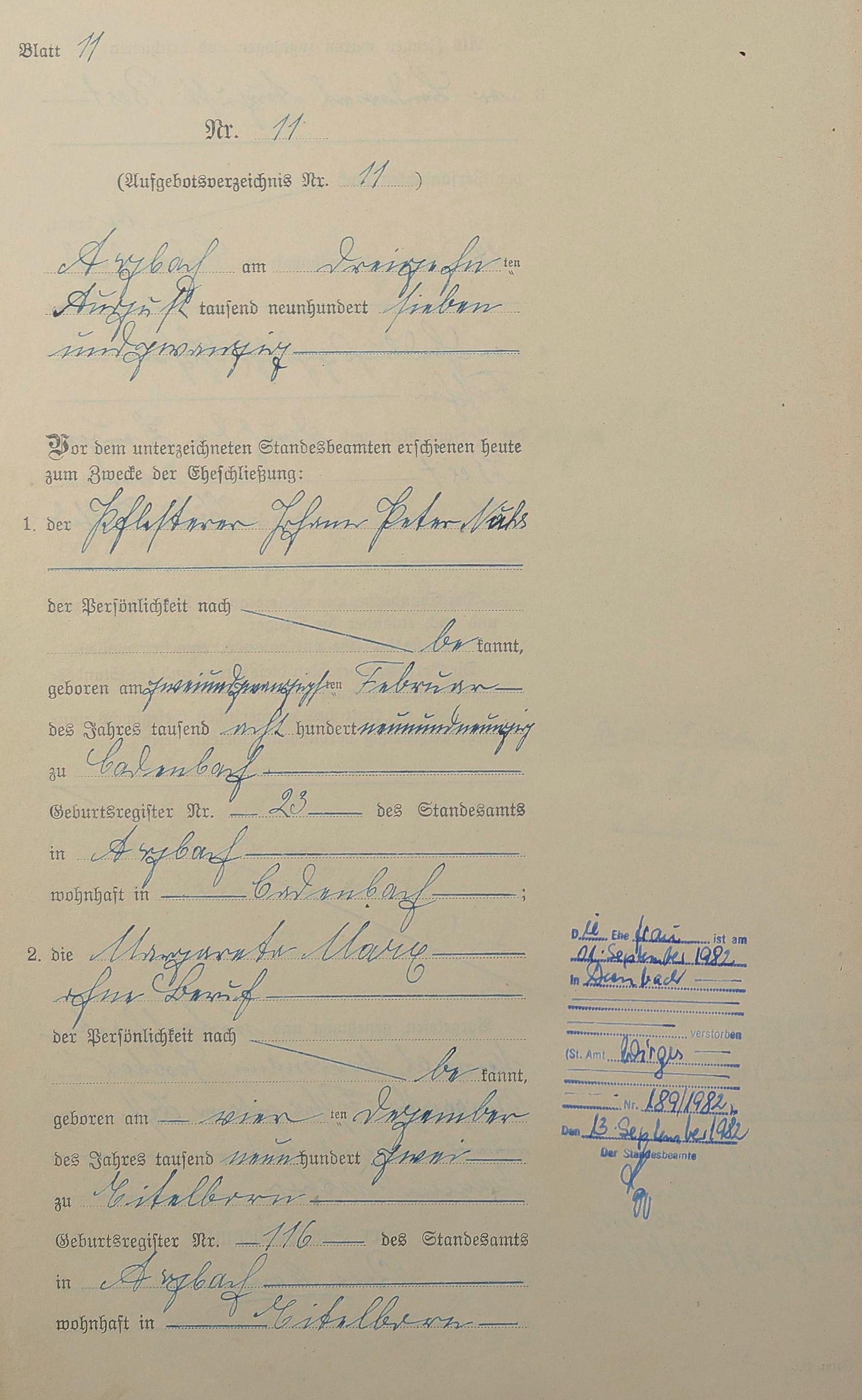 Heiratsregister 1927