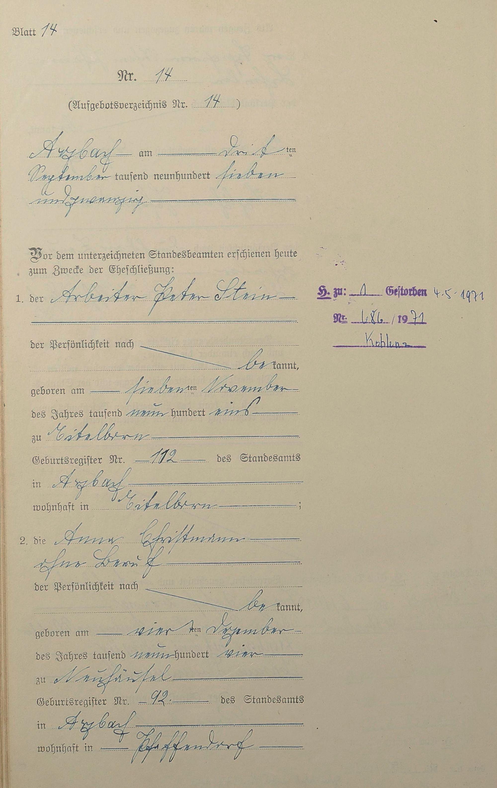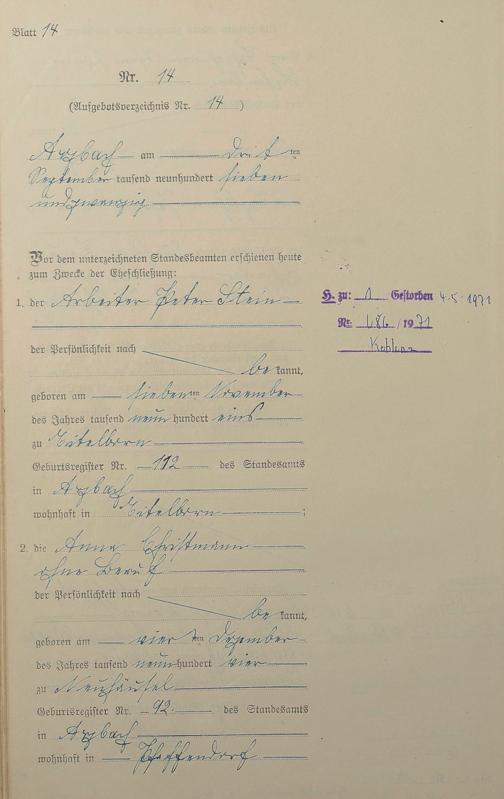 Heiratsregister 1927
