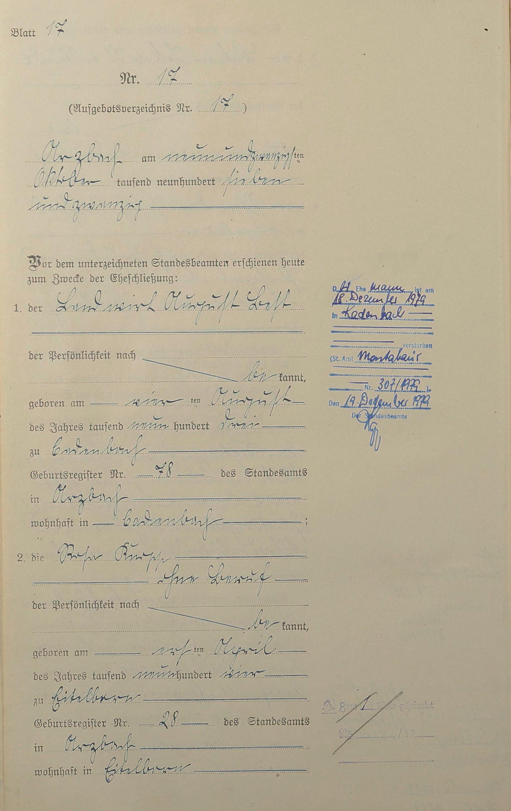 Heiratsregister 1927