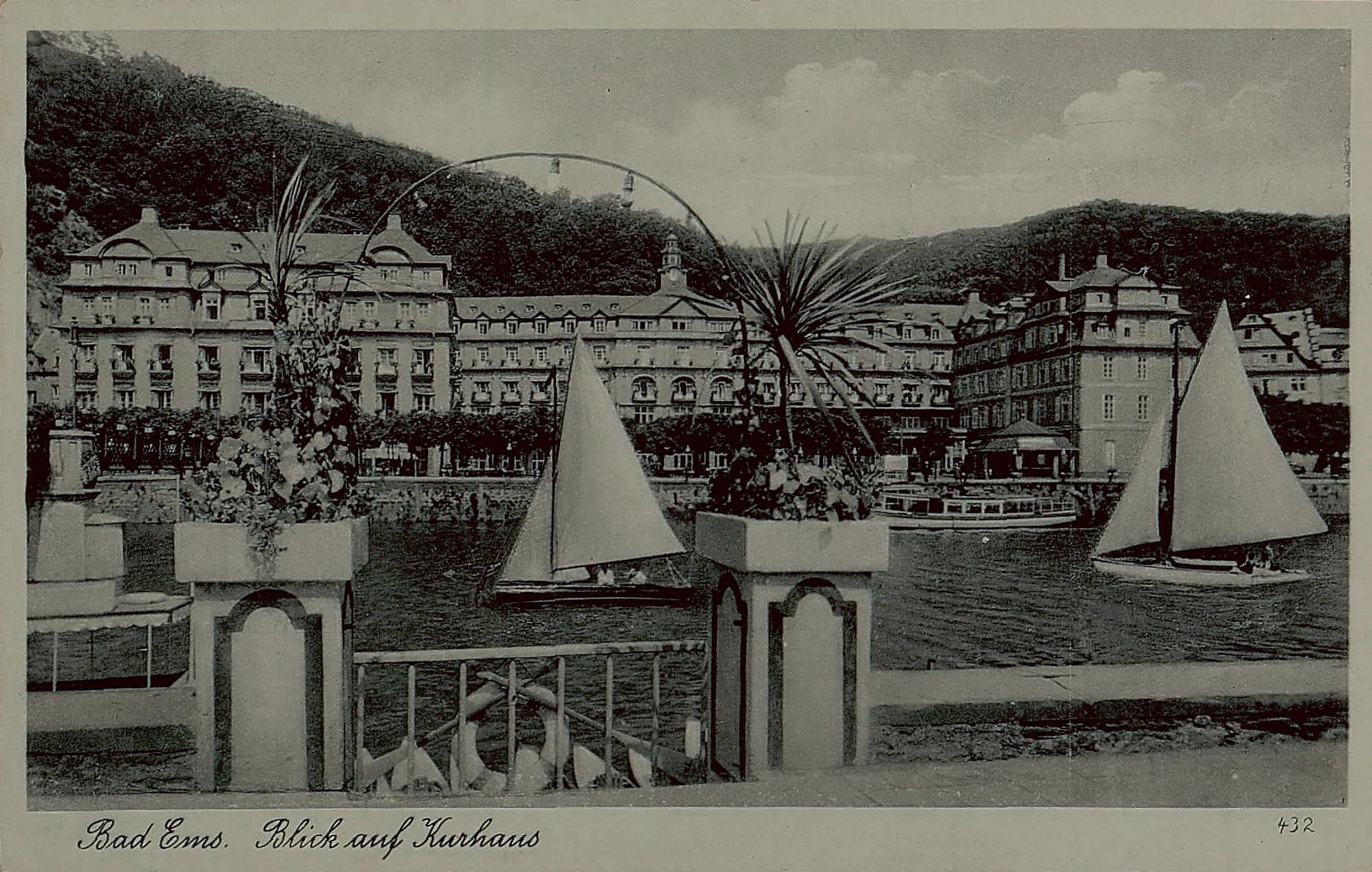 Lahnpartie mit Kurhaus/Kurhotel und Segelbooten