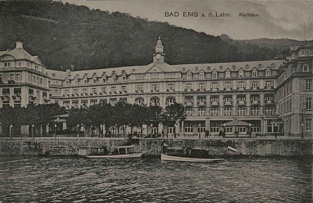Lahnpartie mit Kurhaus/Kurhotel und Ausflugsschiffen