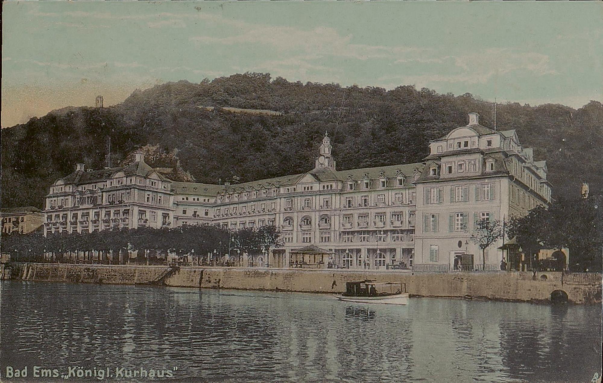 Lahnpartie mit Kurhaus/Kurhotel, Bismarckturm und Ausflugsschiff