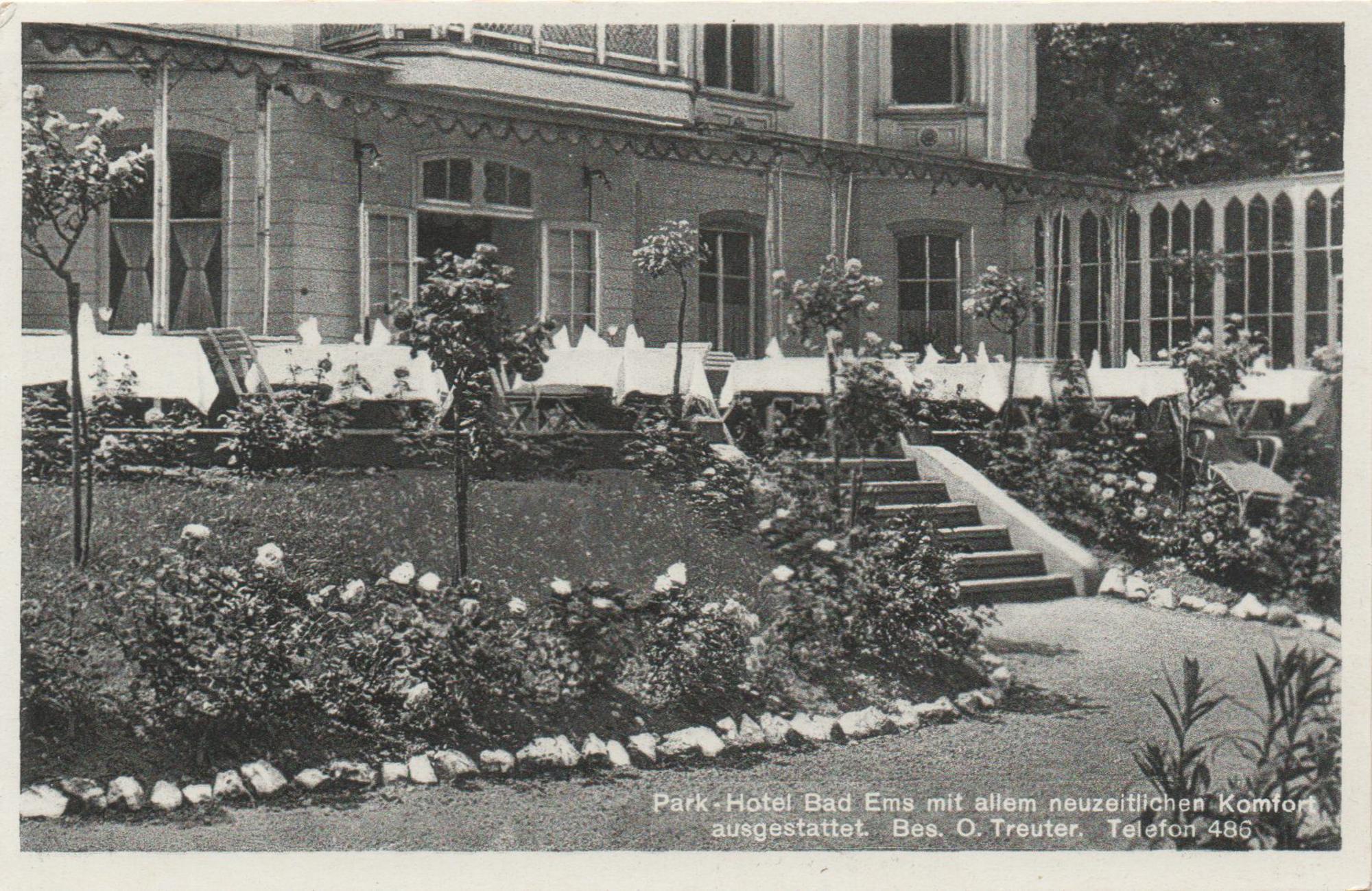Hotel "Parkhotel" des Oskar Treuter Bad Ems Waldstraße/Malbergstraße Nr. 7 (3) - Gartenterrasse