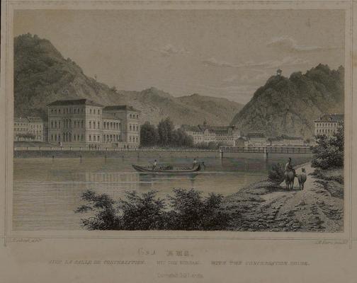 Lahnpartie mit Kursaal, Kurhaus/Kurhotel, Gitternetzbrücke und Bäderley
