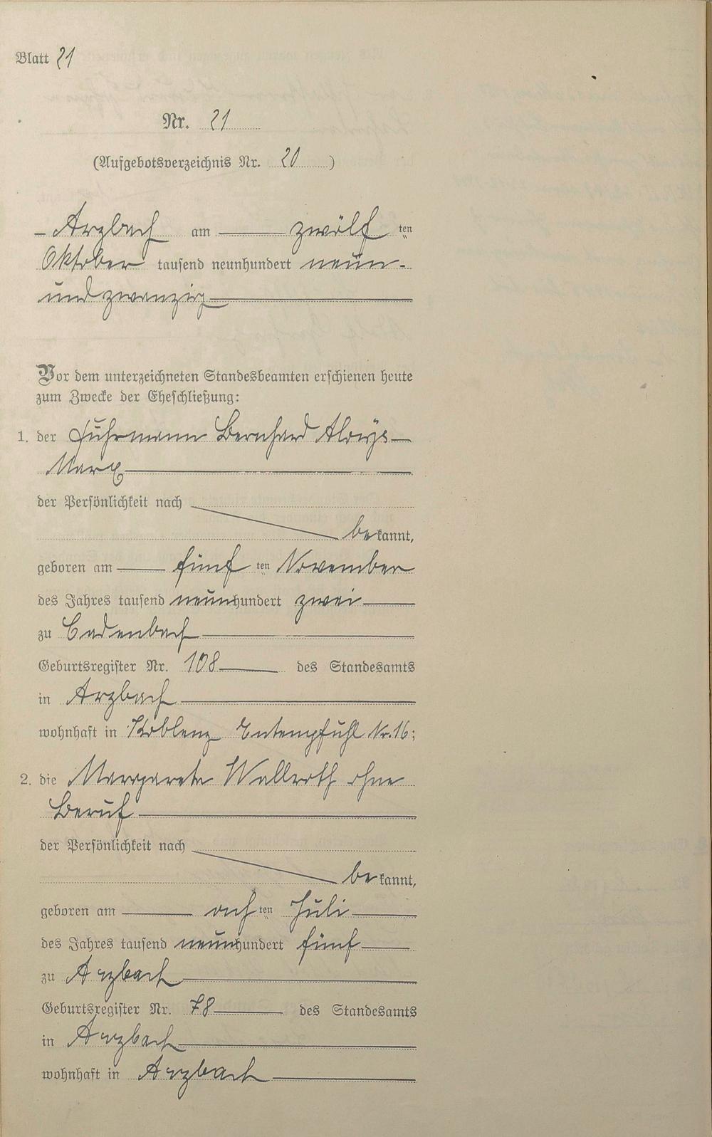 Heiratsregister 1929