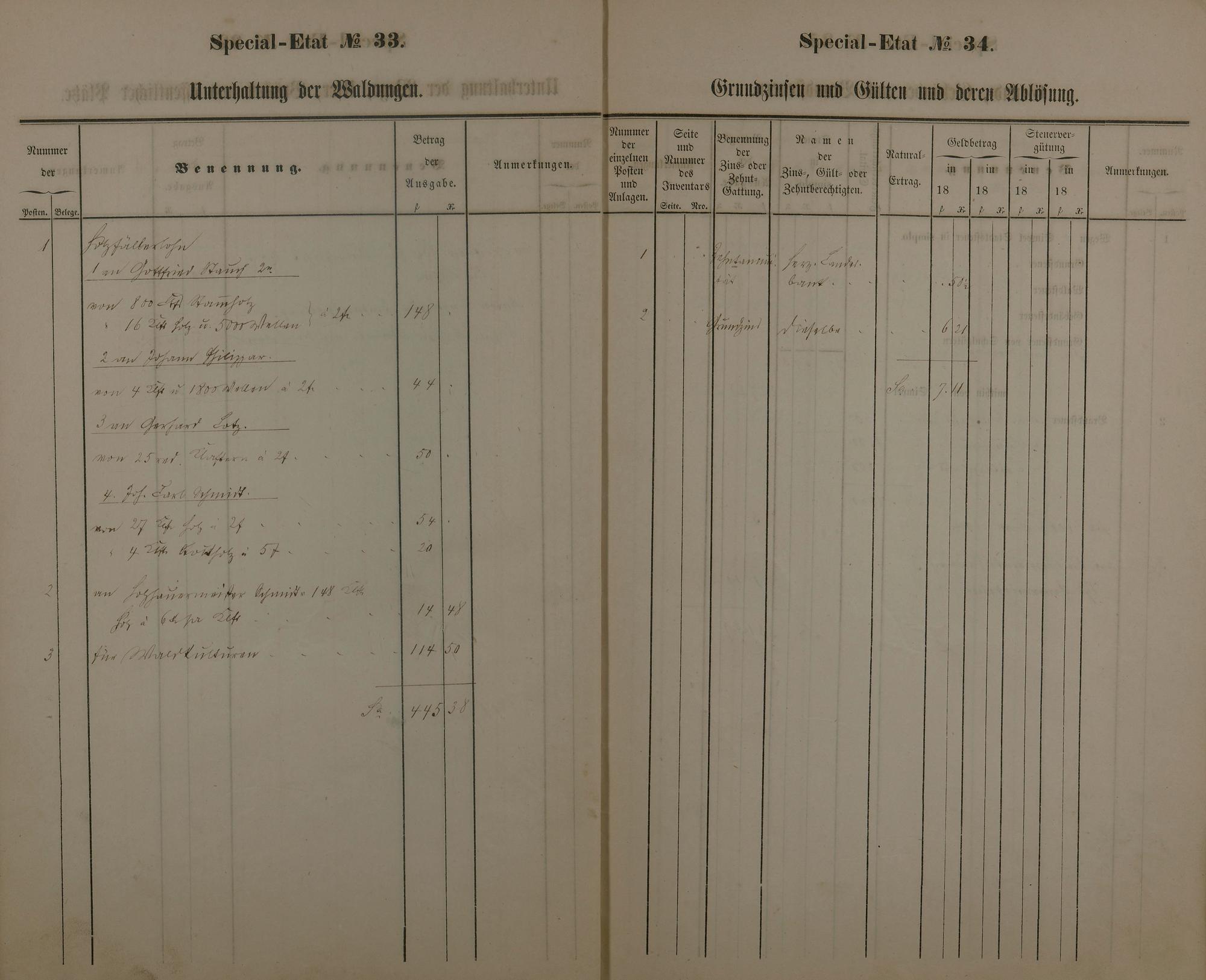Haushaltsplan 1864