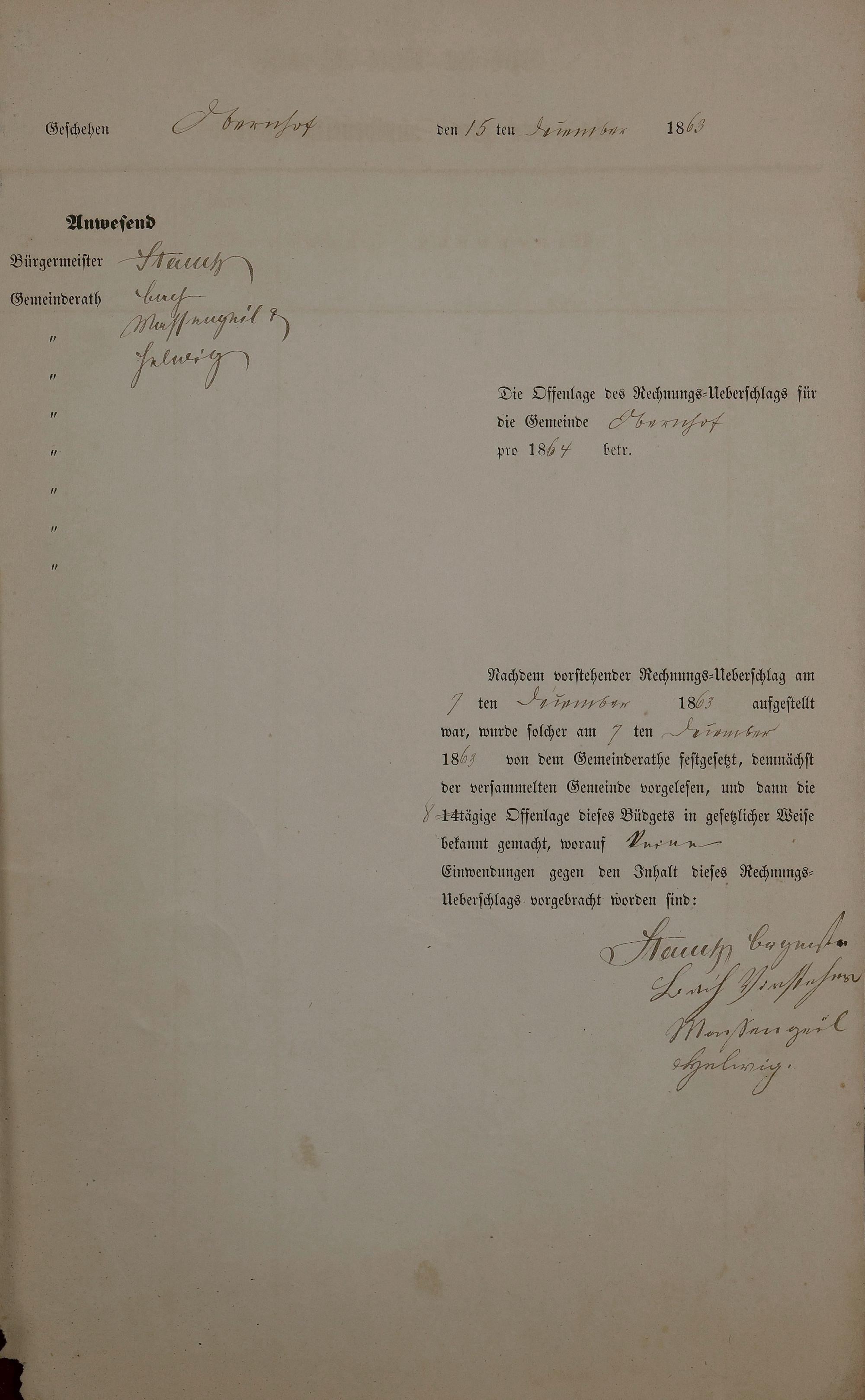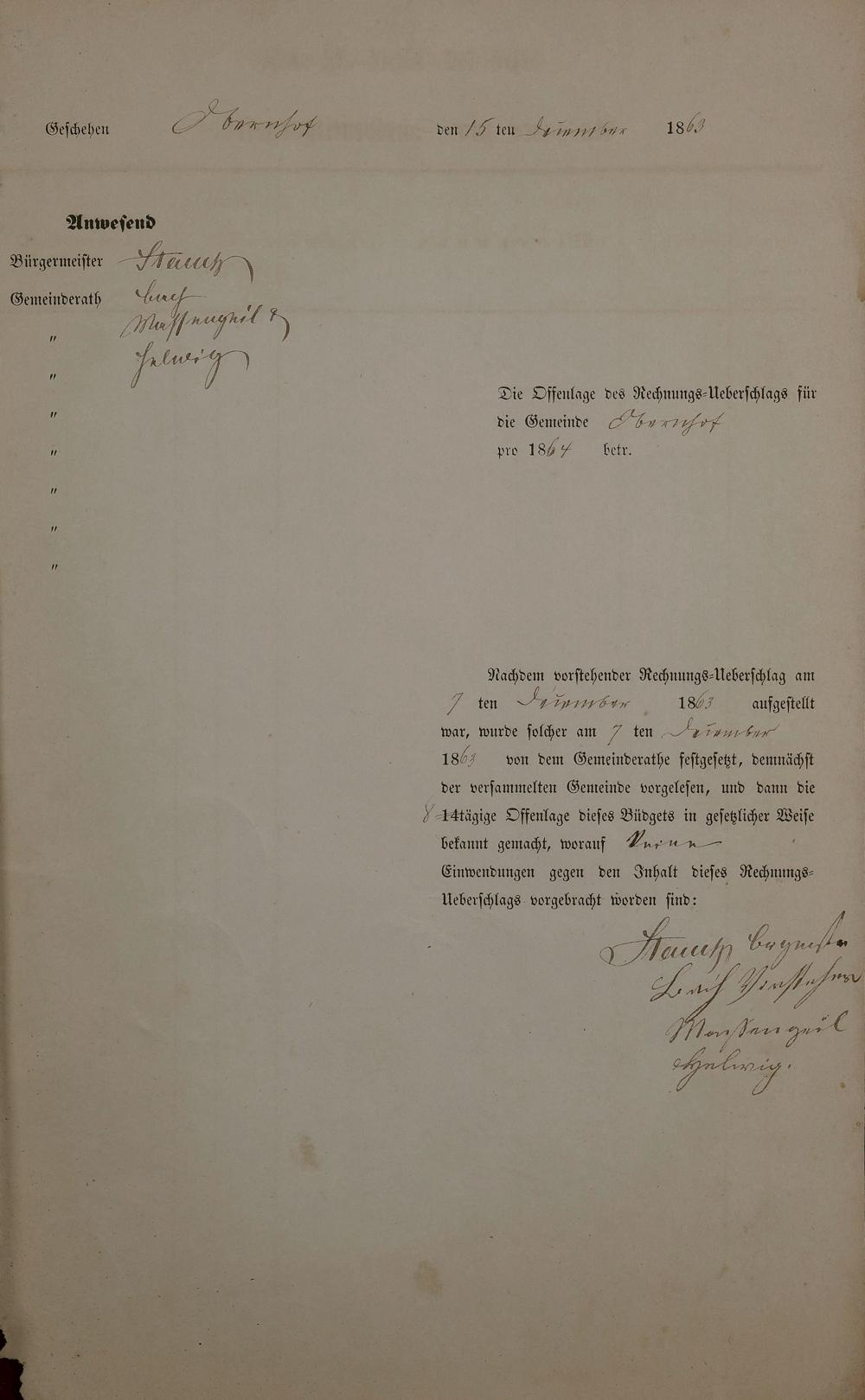 Haushaltsplan 1864
