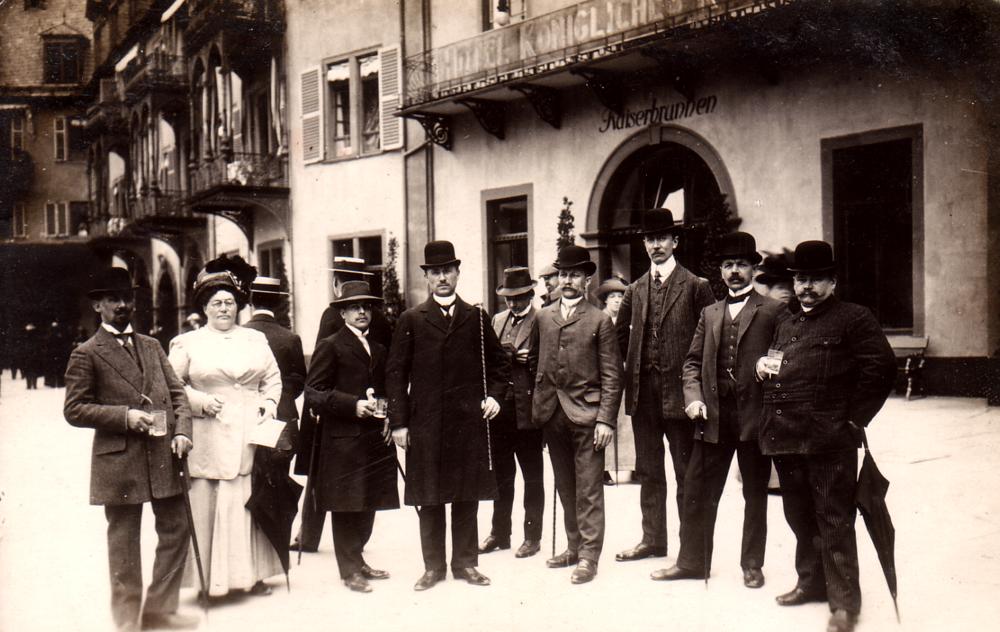 Kurhaus/Kurhotel mit Eingang Kaiserbrunnen und Kurgästen