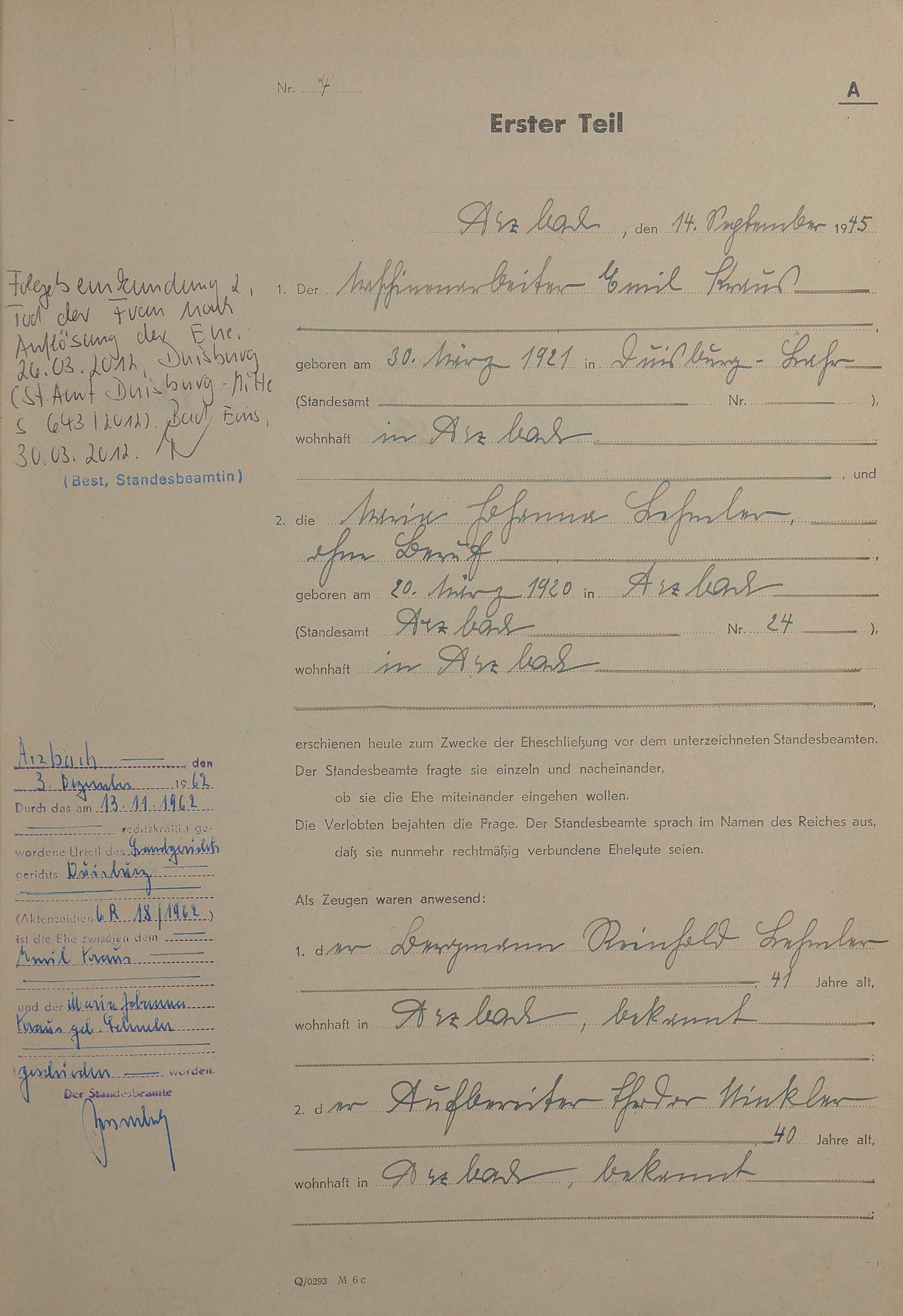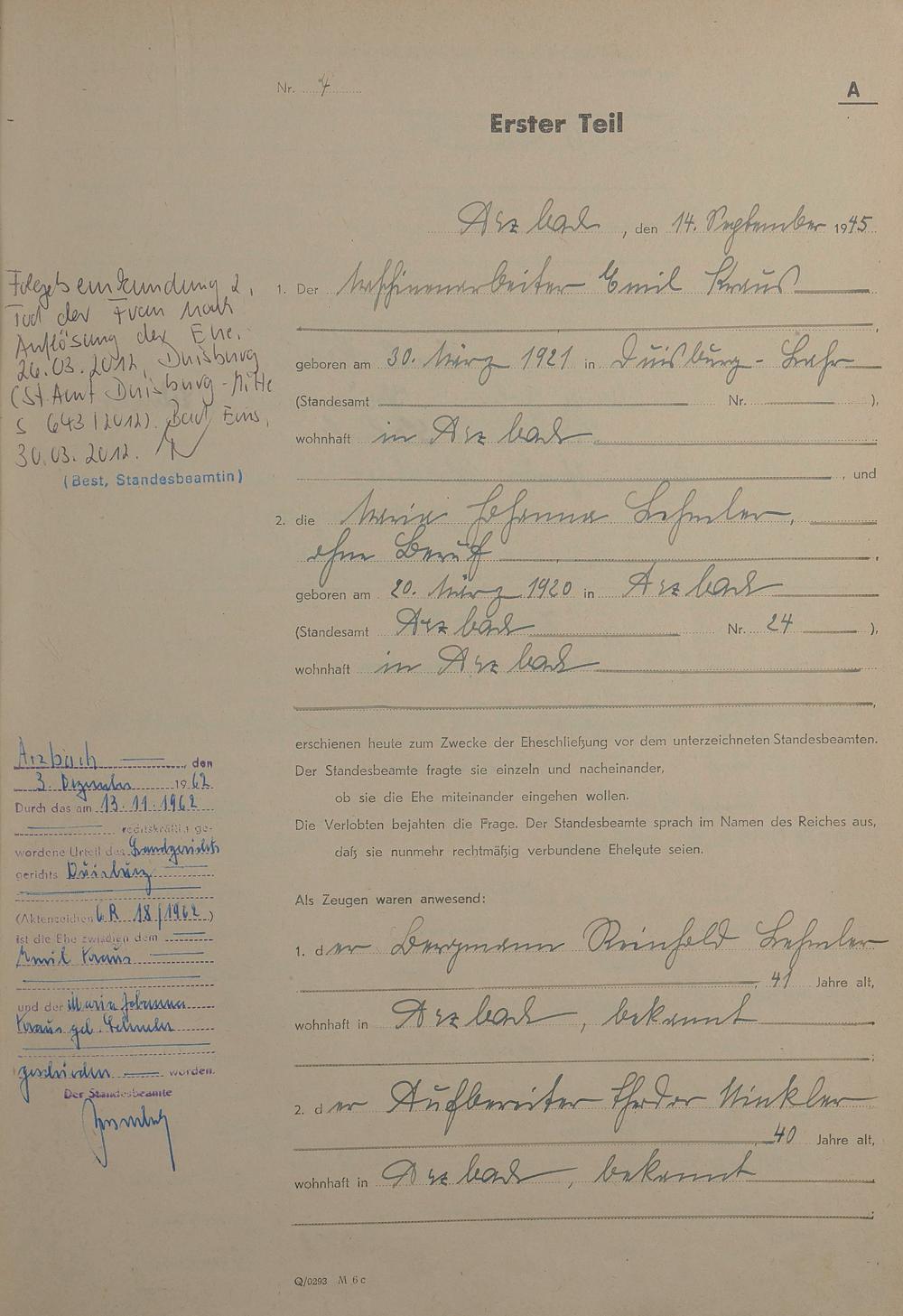 Heiratsregister 1945
