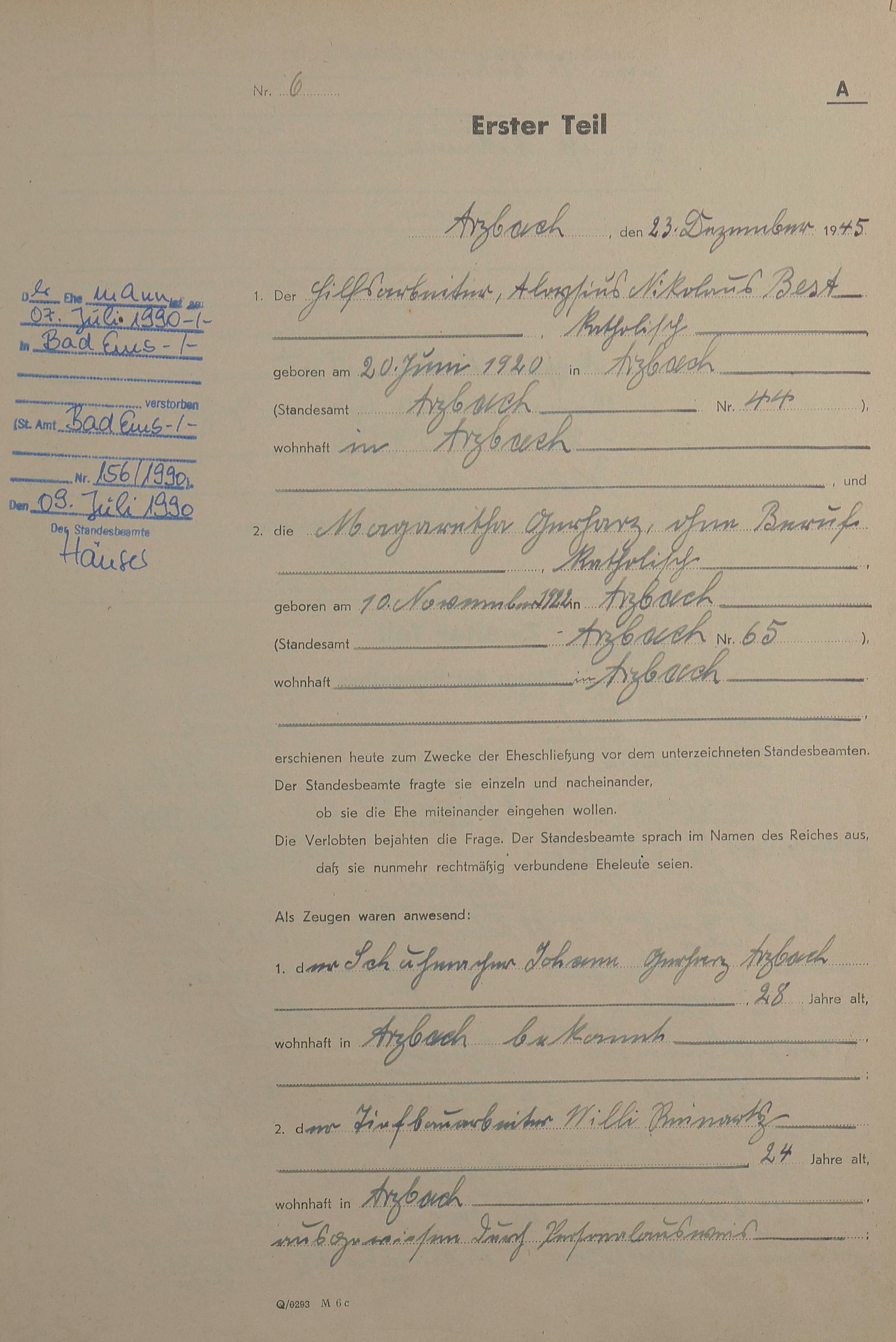 Heiratsregister 1945