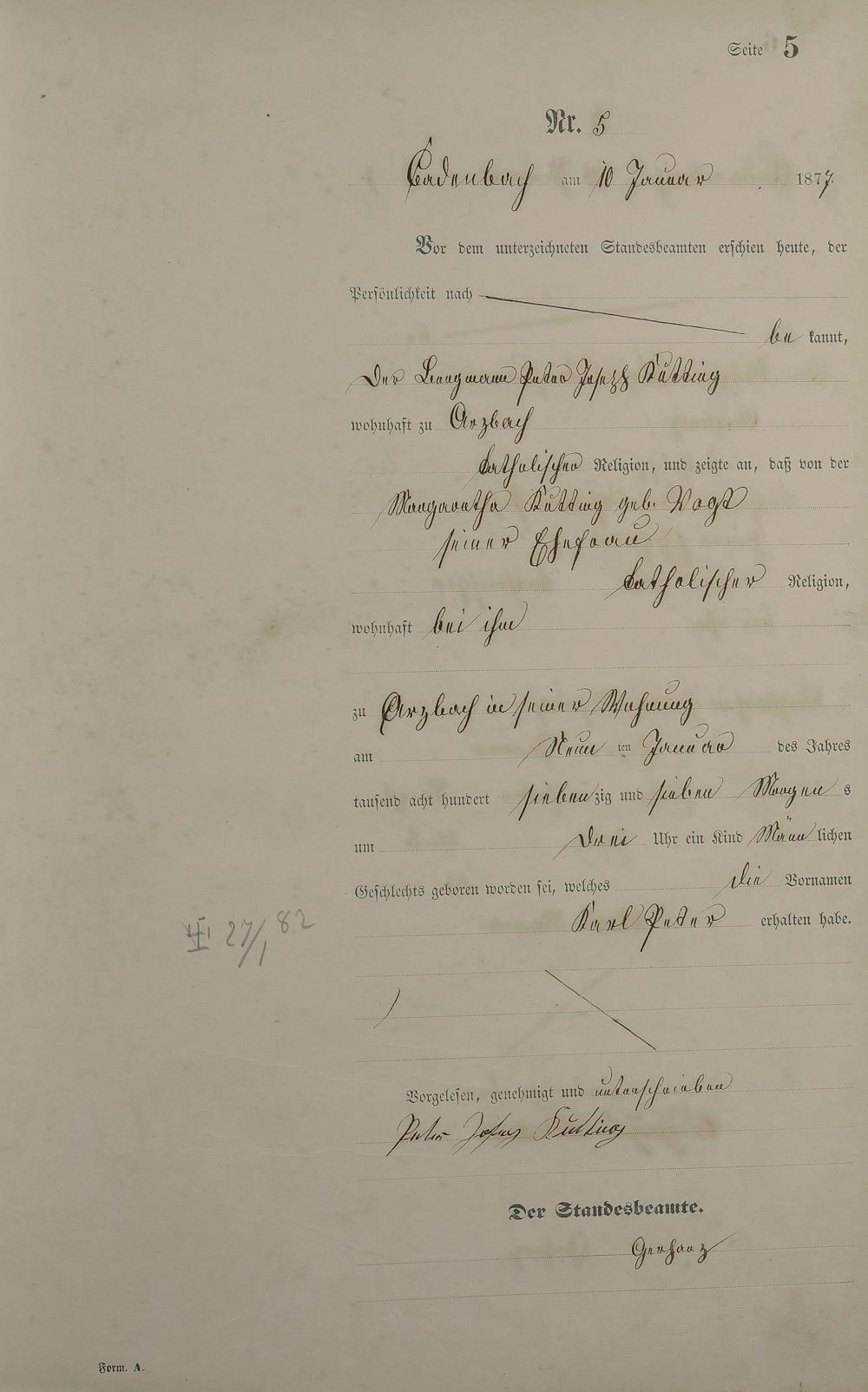 Geburtsregister 1877