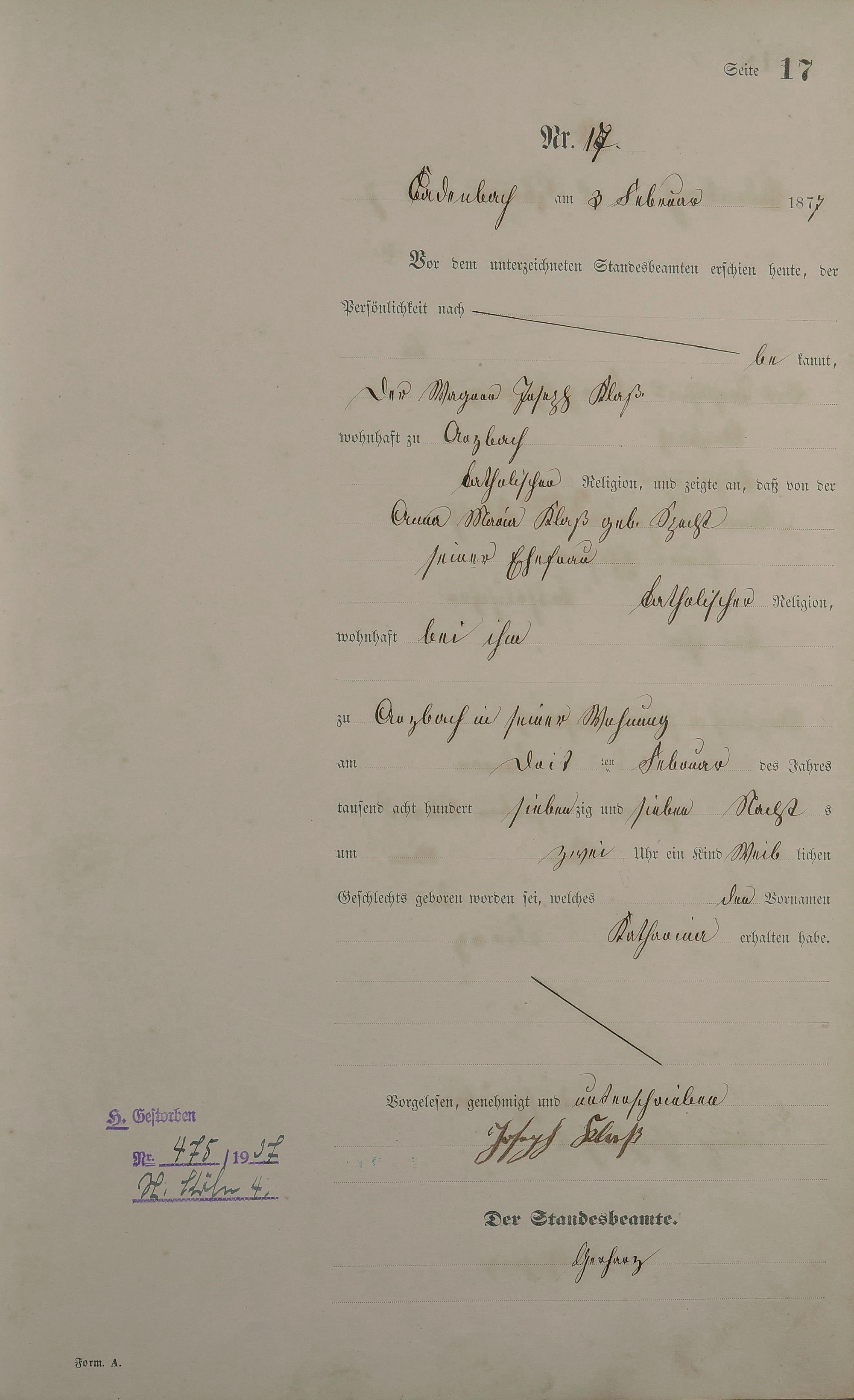 Geburtsregister 1877