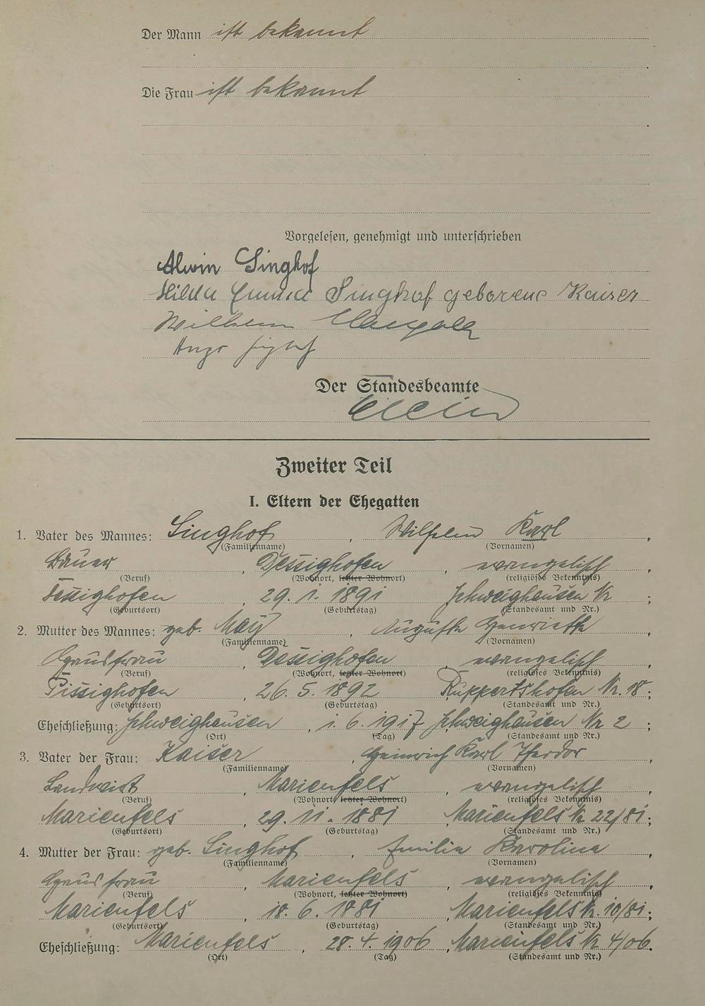 Heiratsregister 1945