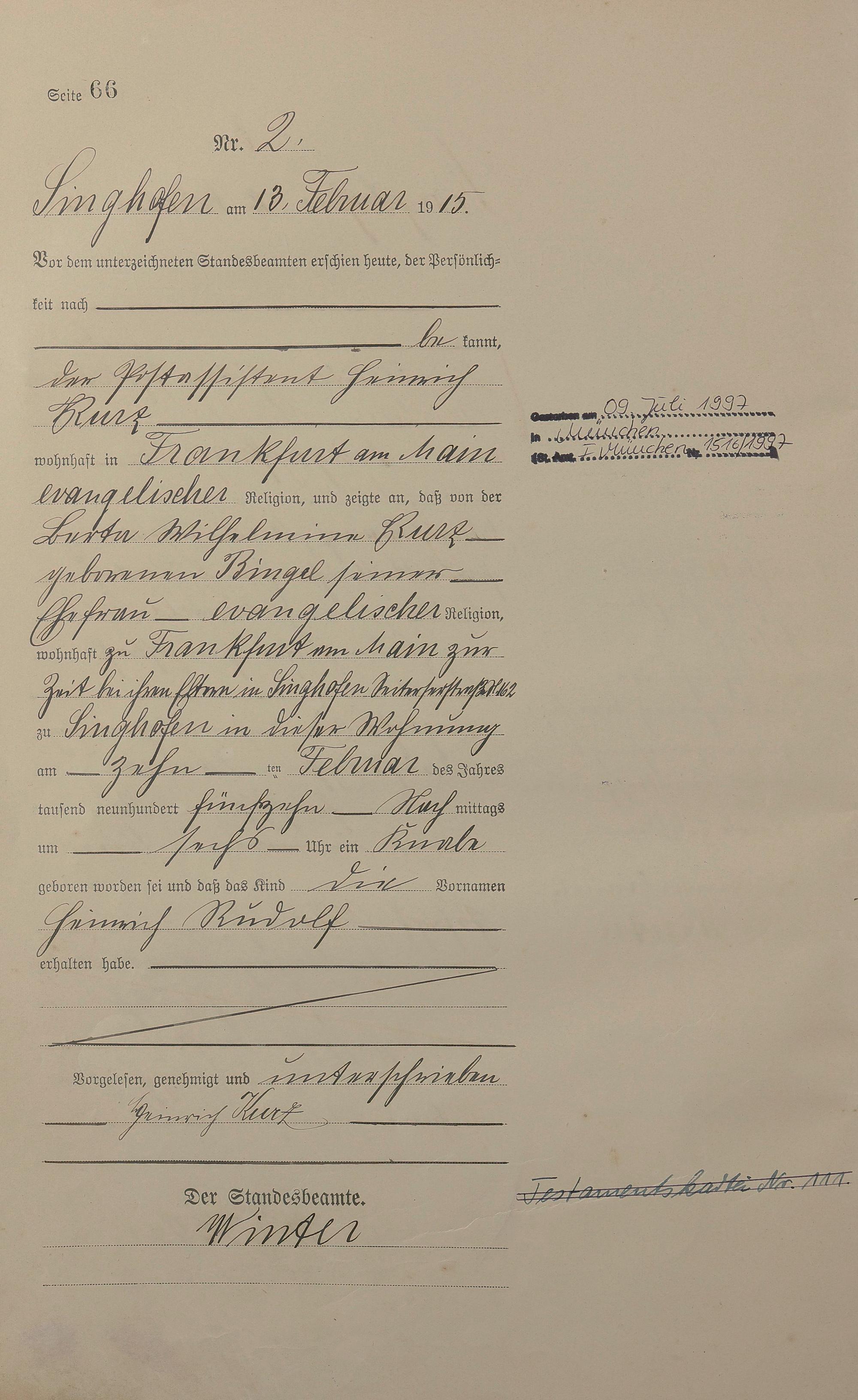 Geburtsregister 1915
