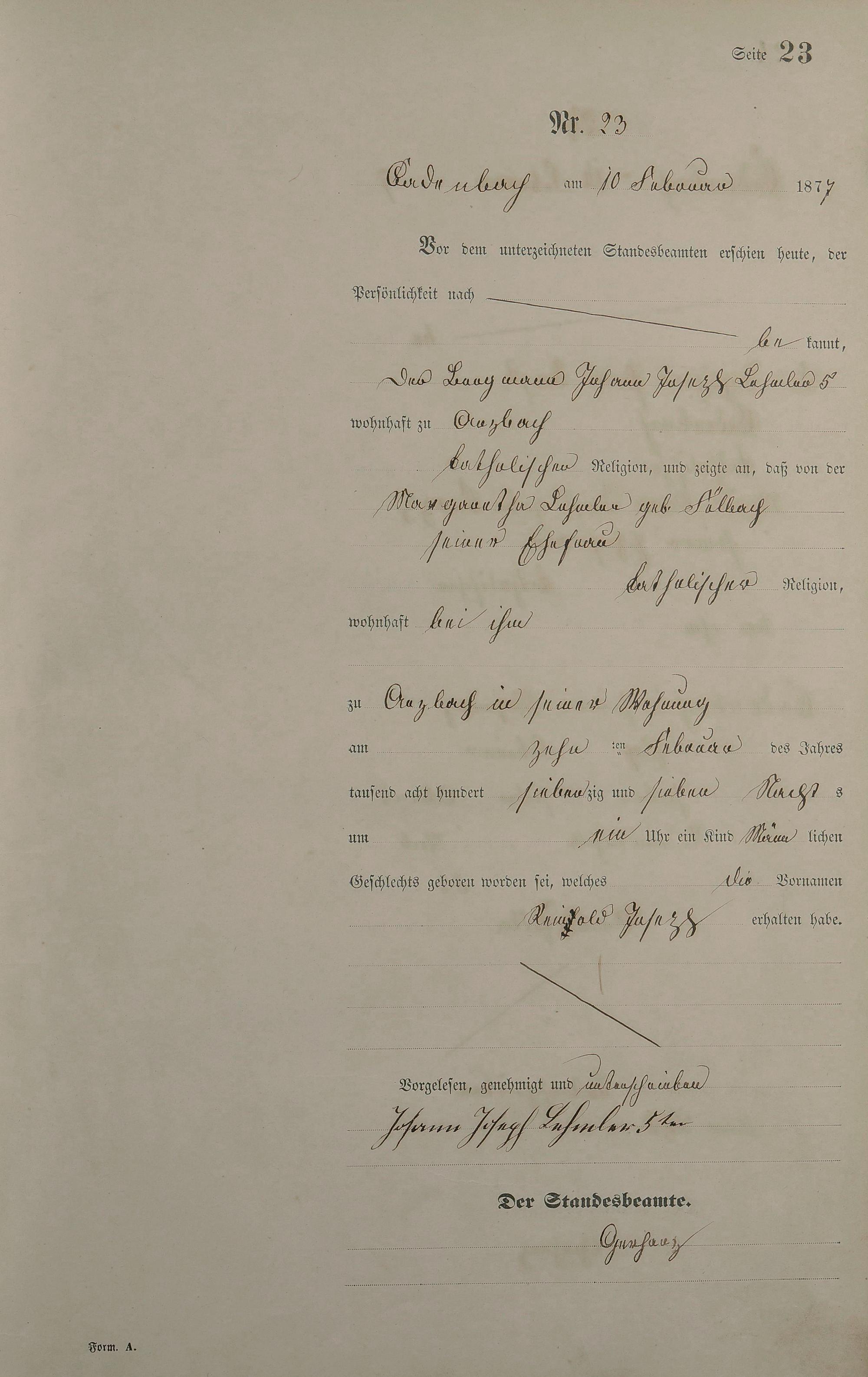 Geburtsregister 1877