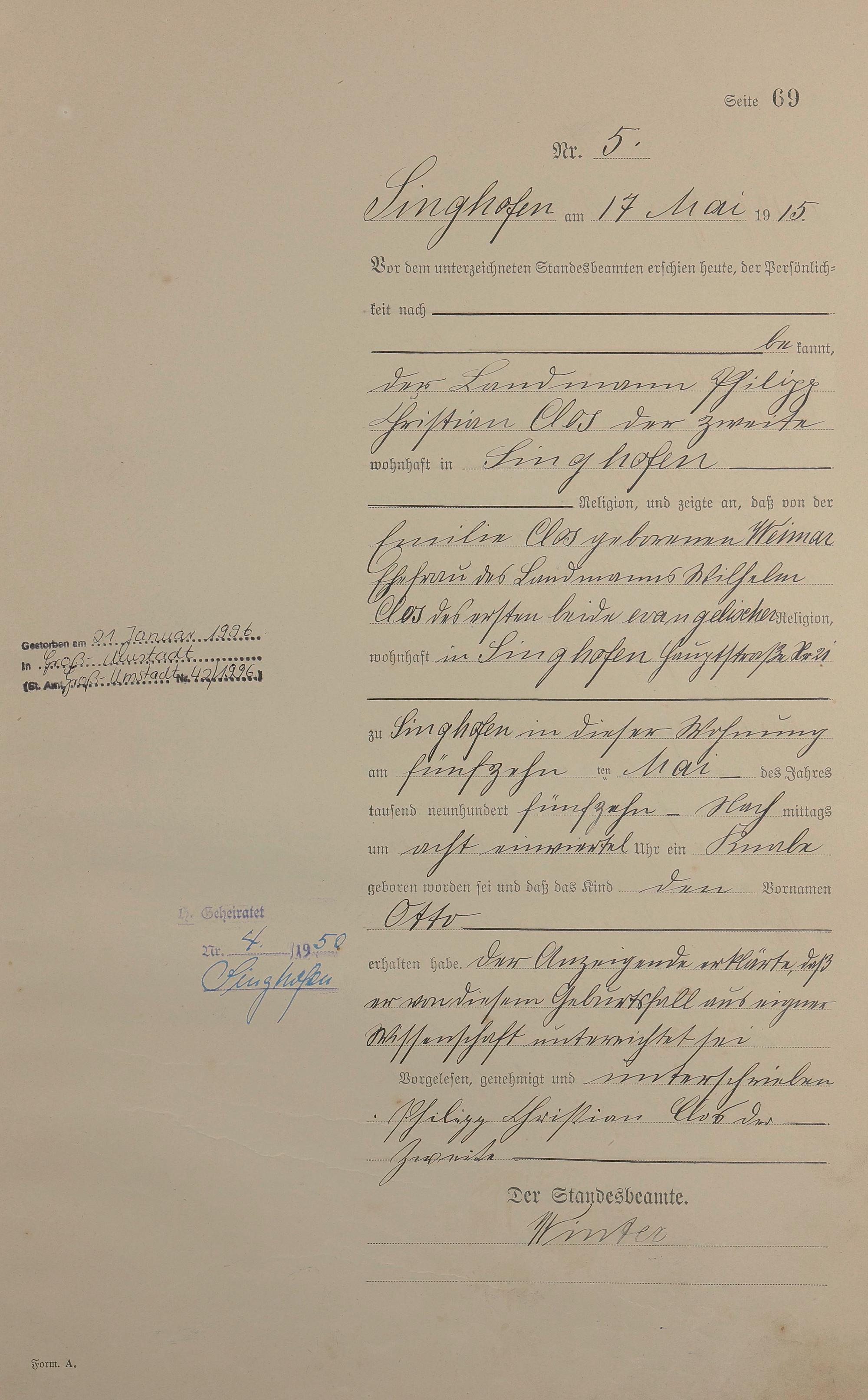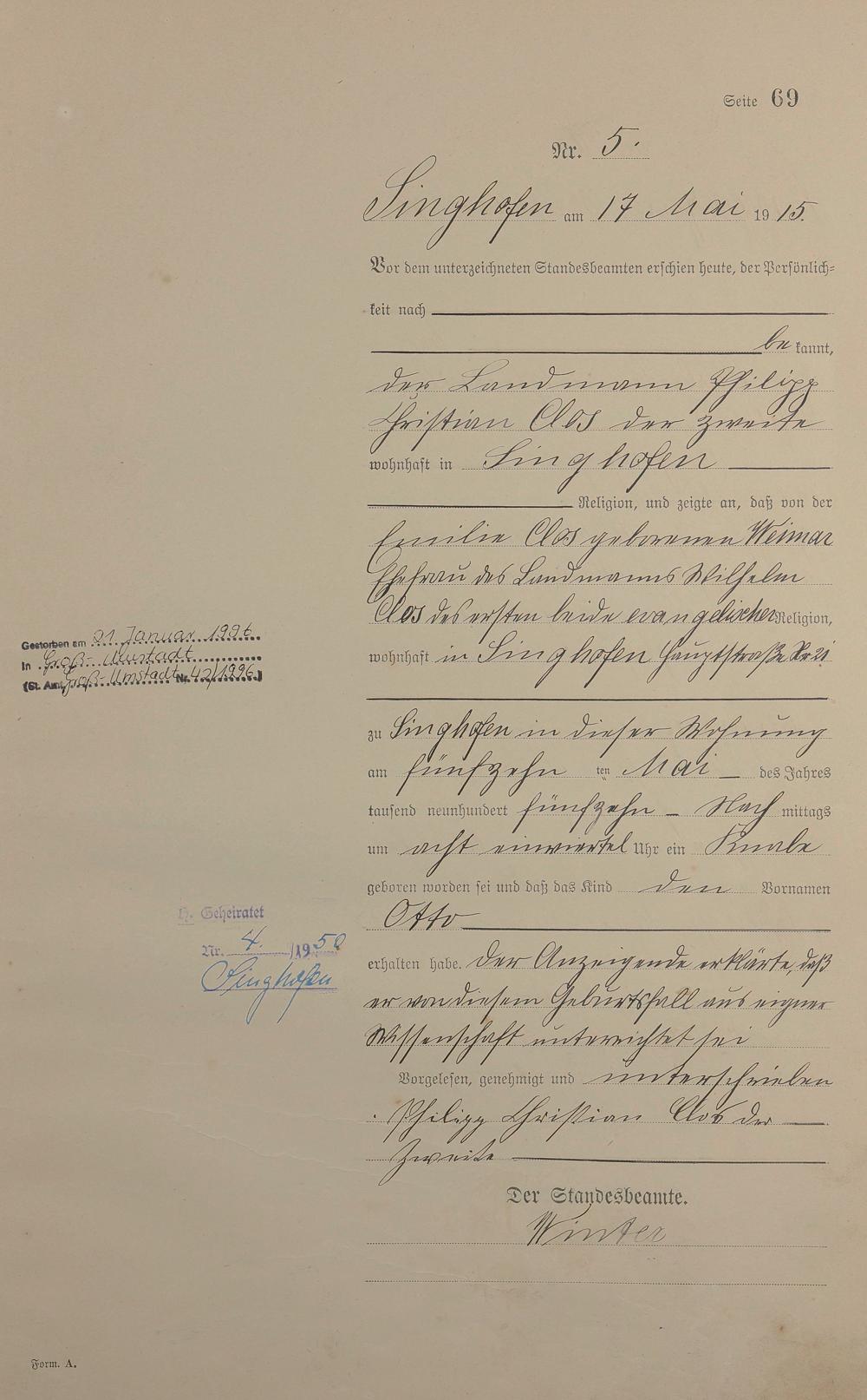Geburtsregister 1915