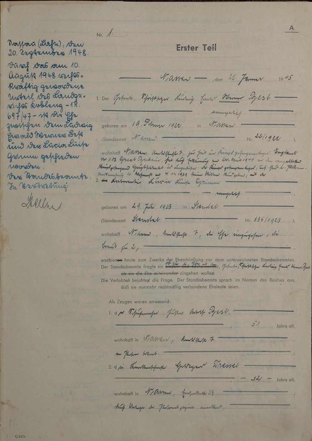 Heiratsregister 1945