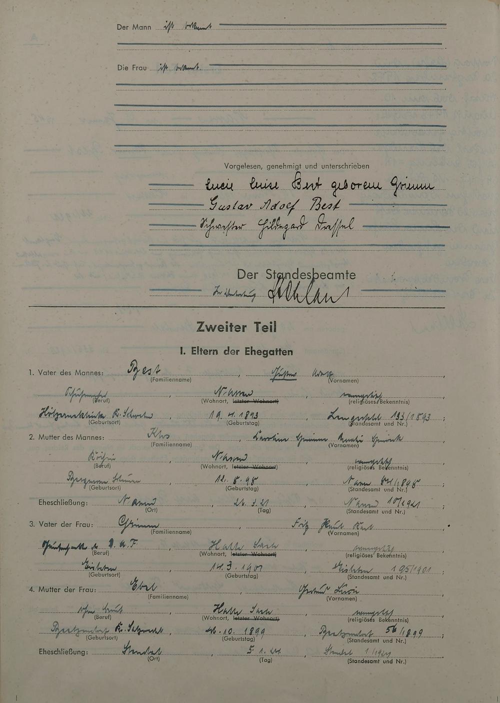 Heiratsregister 1945