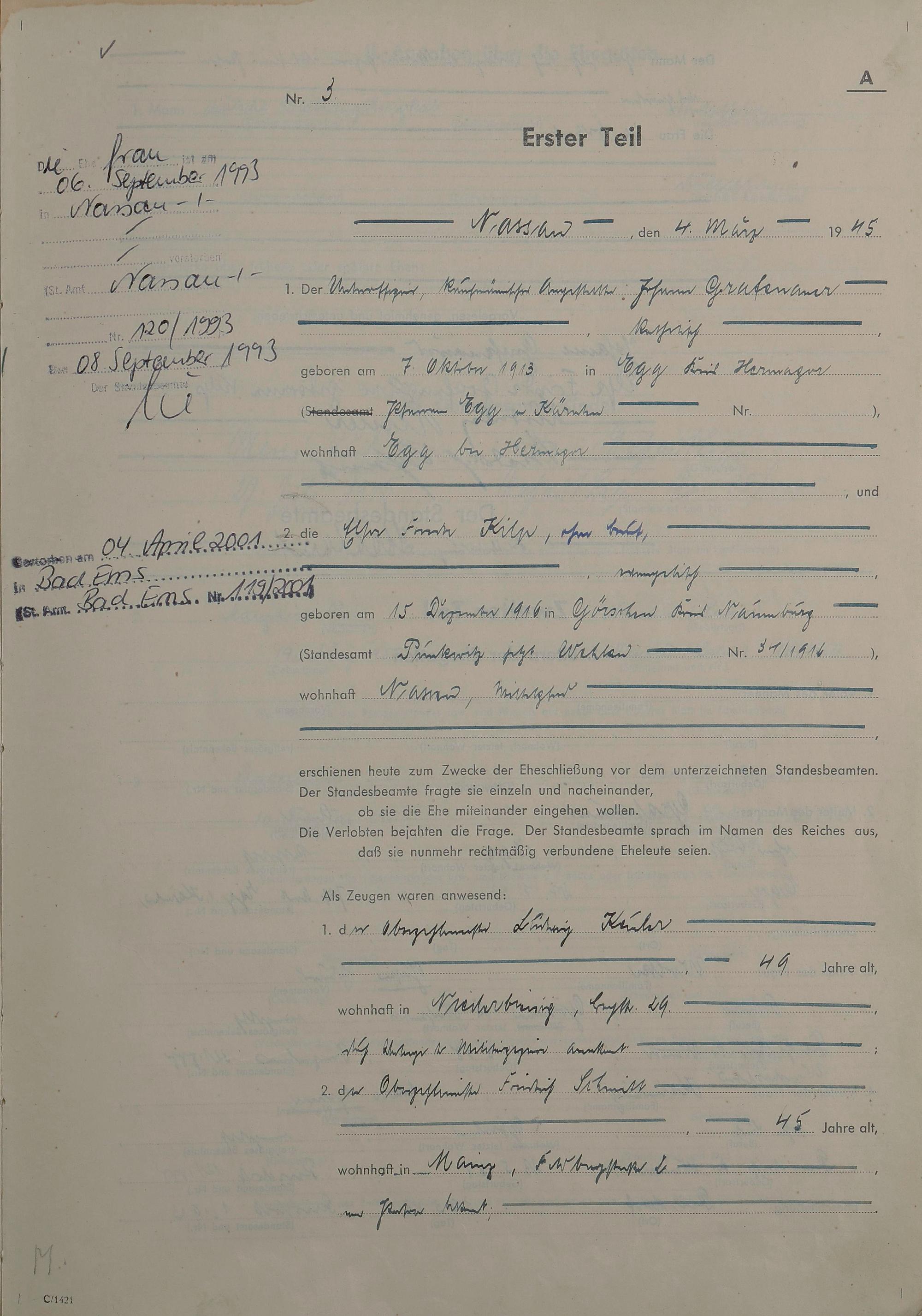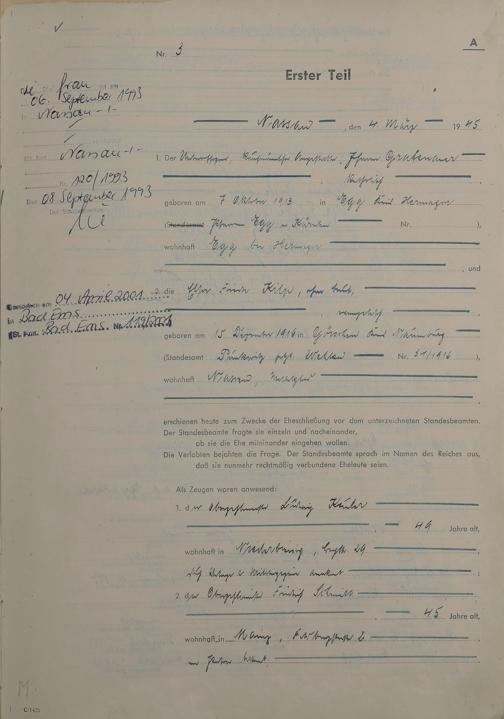 Heiratsregister 1945